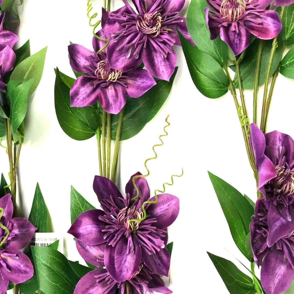 These lovely Artificial Clematis flower stems have purple flowers. These flower stems are made from high-quality materials and are almost real to the touch. They should look great for yours with just occasional dust. Perfect for faux flower craft projects, wedding decorations, gifts and flower displays in lobby areas, hallways, living rooms and entertaining areas.
