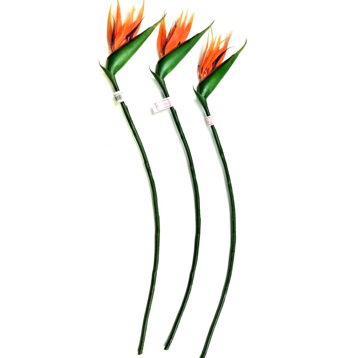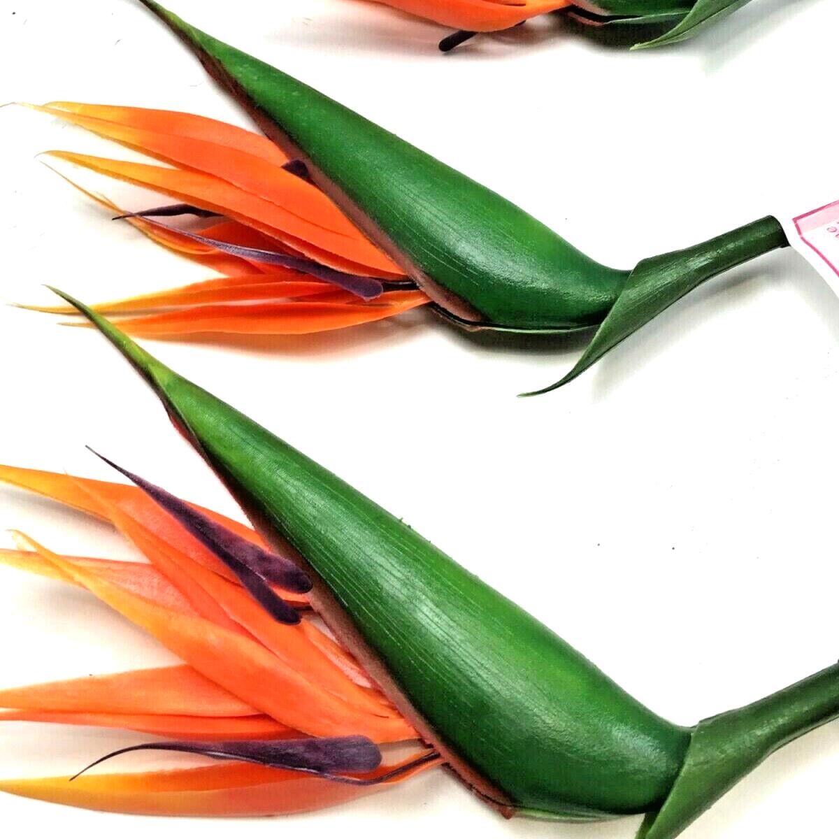 These lovely Artificial Bird of Paradise flowers measure 90cm tall with stems and have orange and purple flowers. The texture of the flowers and leaves gives these tropical flower stems a real touch feel. Perfect for faux flower craft projects, tropical displays, wedding decorations, gifts and flower displays in lobby areas, hallways, living rooms and entertaining areas.