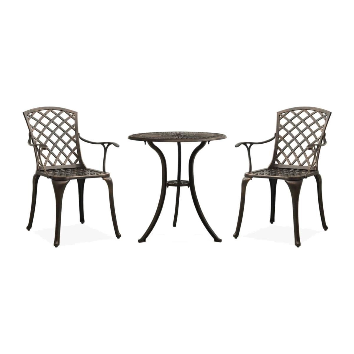 It is a great pleasure to chat with your friends or have a cup of tea or coffee while relaxing on this decorative yet functional bistro set. The chairs and table are made of weather-resistant cast aluminium, so you can enjoy the bistro set for many years to come. These garden chairs feature high backrests and seats with a hollow design. The ergonomically curved armrests can effectively relax your arms. The sturdy tabletop features beautiful patterns and is suitable for placing drinks, food and other essentials. This outdoor furniture set is perfect for morning brunches or long afternoon conversations.