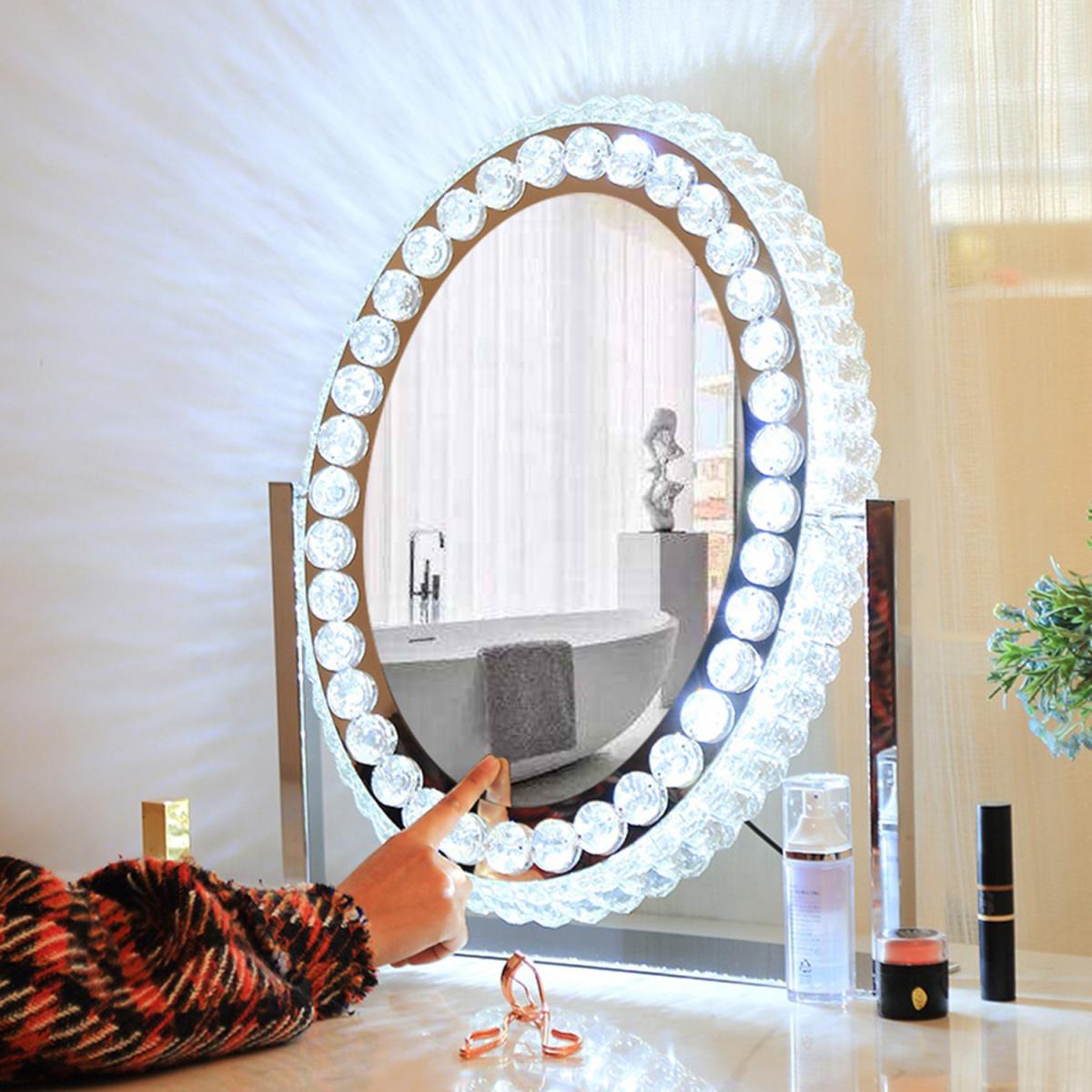 3-Color Dimmable Crystal Hollywood Makeup Mirror - Silver