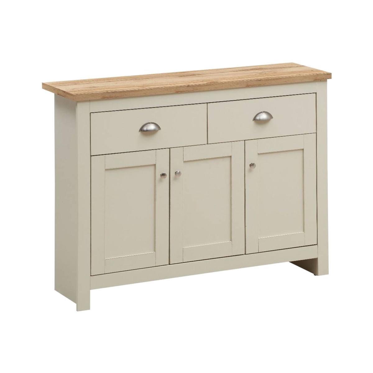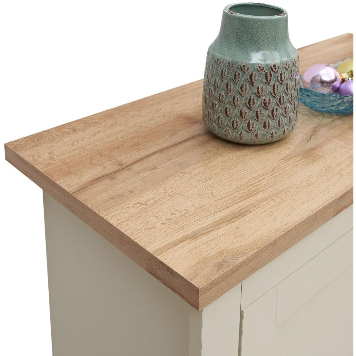 Full of presence, the Lisbon range in Cream and cascading Oak tops fills any room with warmth and comfort. A stylish sideboard with two spacious drawers and three cabinets.