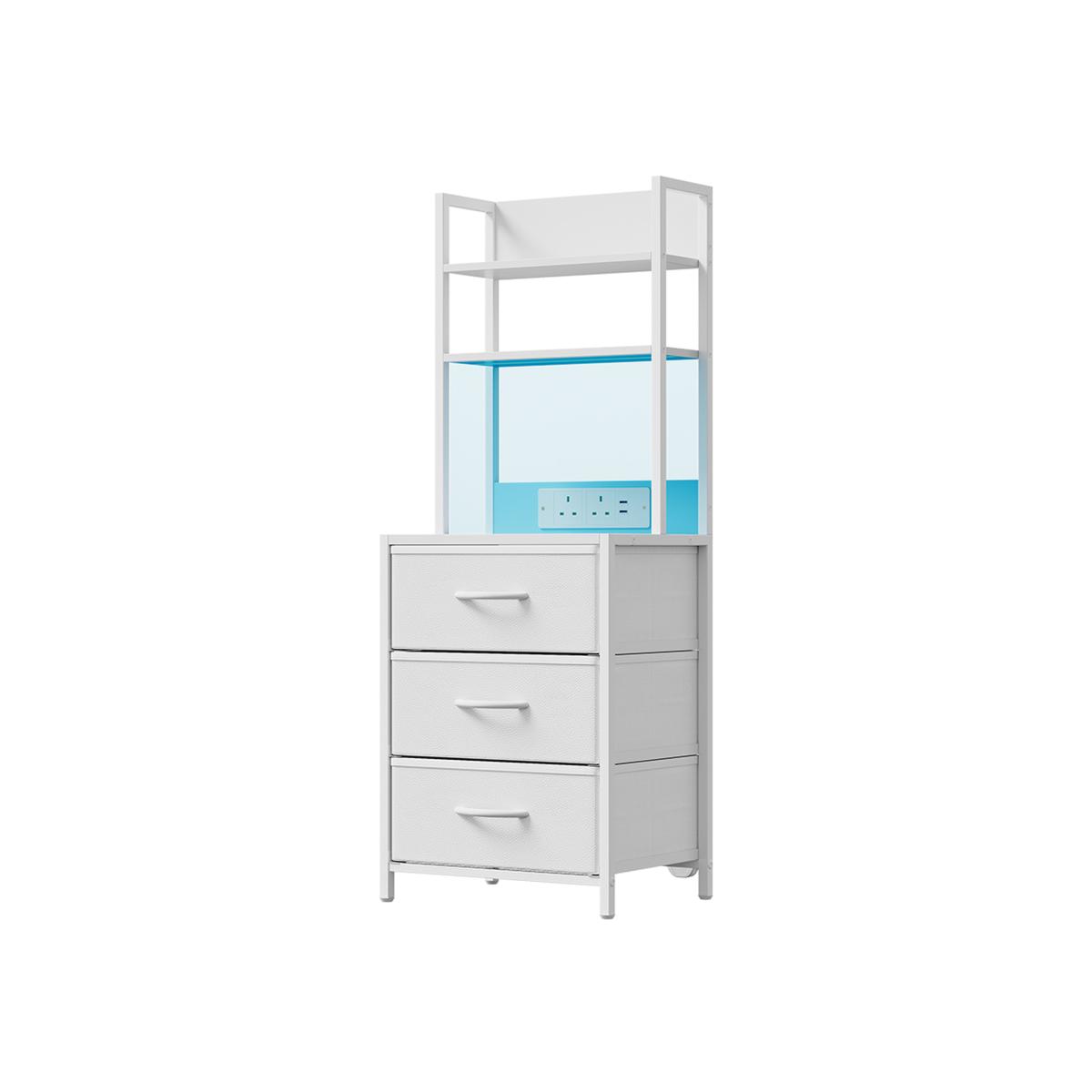 Enhance your bedroom with this stylish and practical nightstand, designed to maximise vertical space with a sleek, minimalist look that complements a wide range of interior decor styles. It offers three convenient drawers for personal items and three open shelves to neatly organise books, photos, ornaments, and remote controls, helping you maintain a tidy and orderly room. The integrated RGB light strips allow you to customise the colour, brightness, and lighting effects via remote control or a mobile app, creating a personalised ambience to suit your mood. In addition, the built in power socket enables direct charging for your phone, tablet, laptop, and other devices, blending modern aesthetics with everyday functionality.