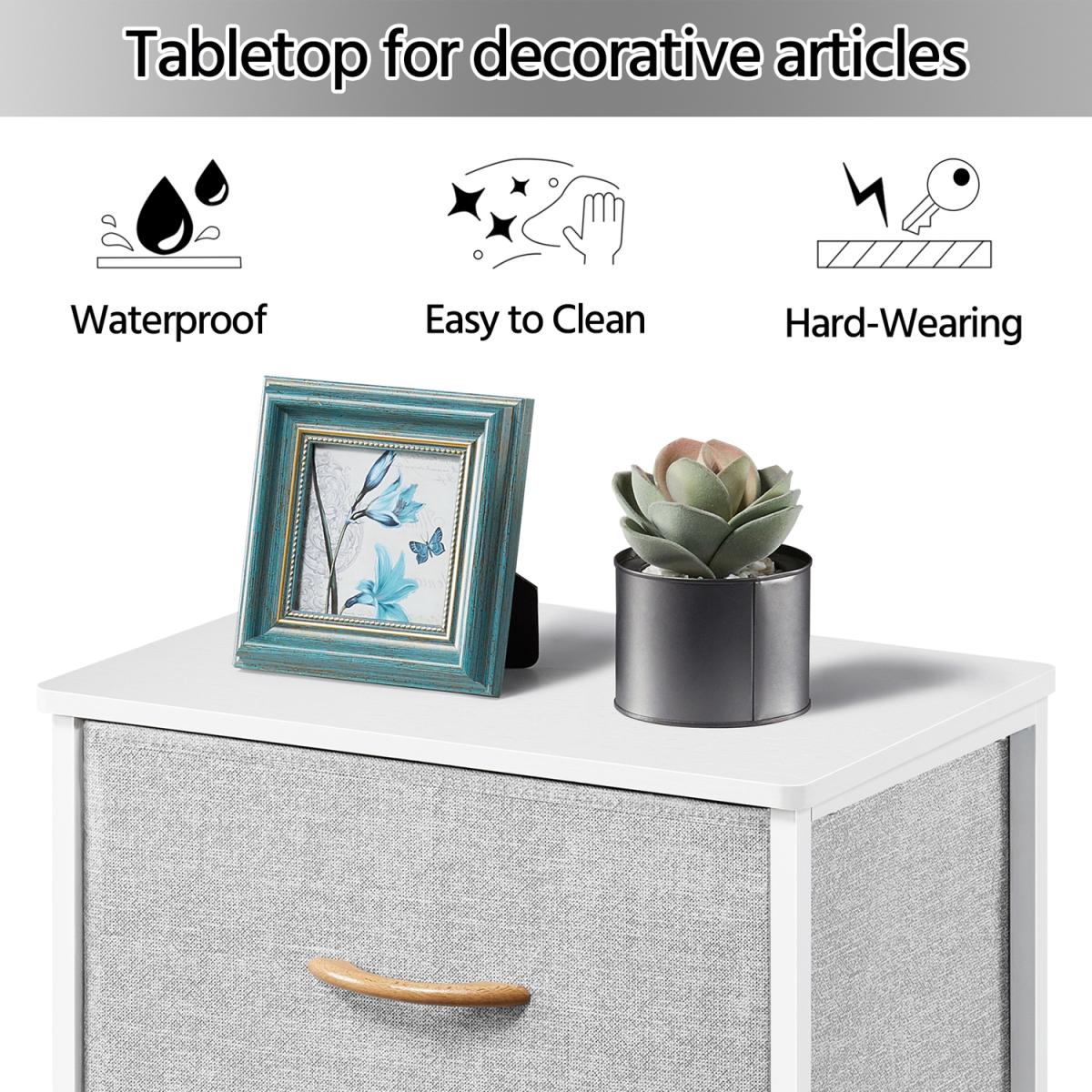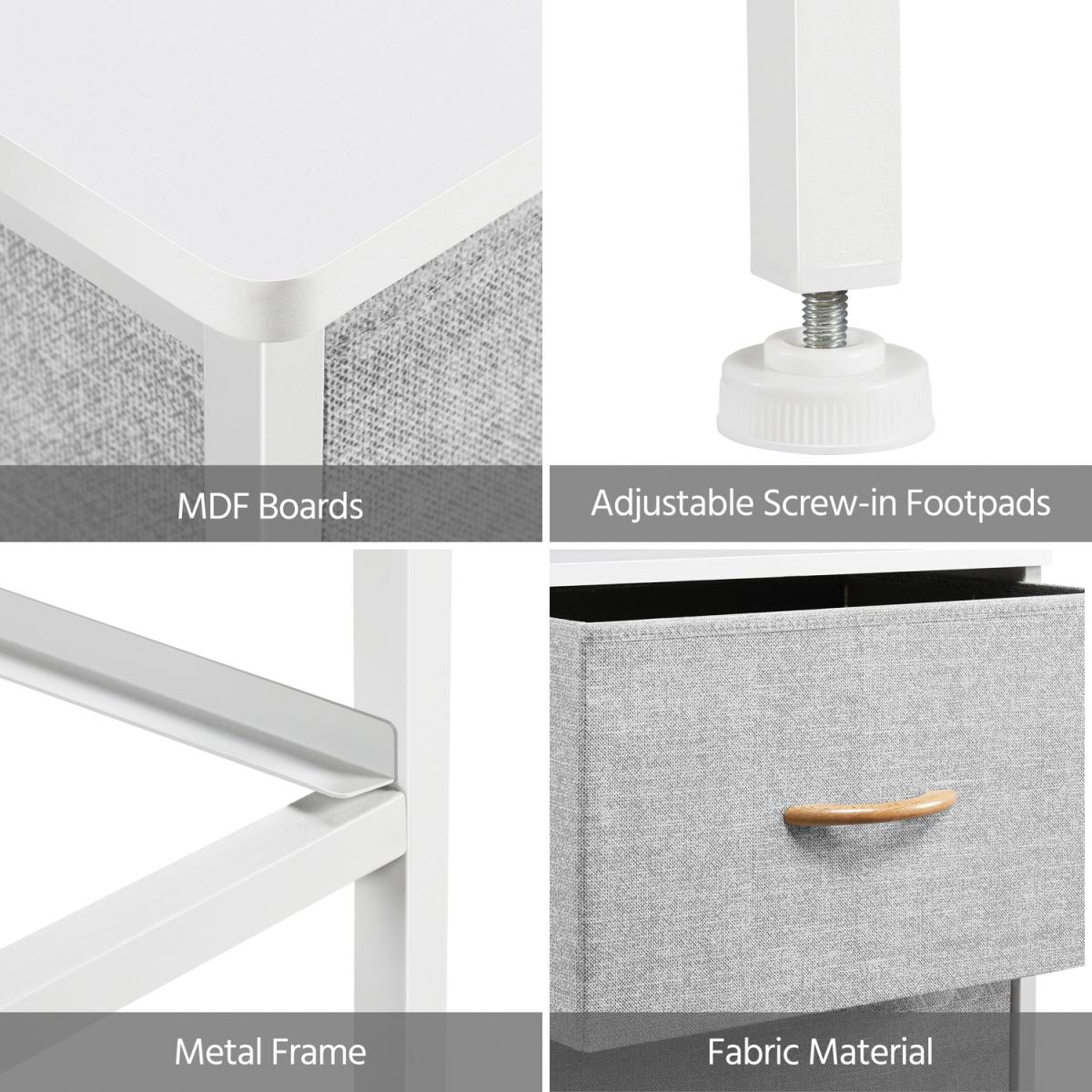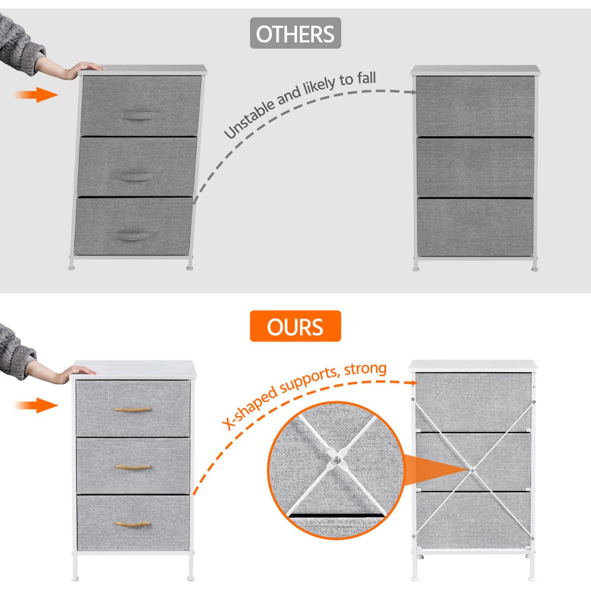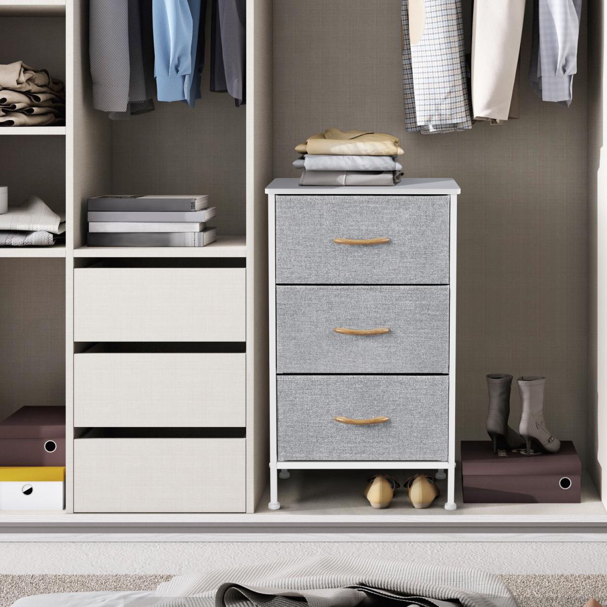 This vertical 3-drawer organizer combines an efficient storage function with a simple appearance, which is super suitable for family use. Built of a sturdy metal frame and durable fabric surface, this organizer unit could hold a reasonable amount of stuff and won't damage your items. Three compact drawers are suitable for storing small-scale items. Besides, the MDF tabletop could be an eye-catching place to display the flower vase, family photos, and other adornments. With a lightweight design, the fabric tower is ideal for living rooms, bathrooms, hallways, studios, offices, and so on. To meet your different needs, you can mix and match them with our other fabric storage towers.