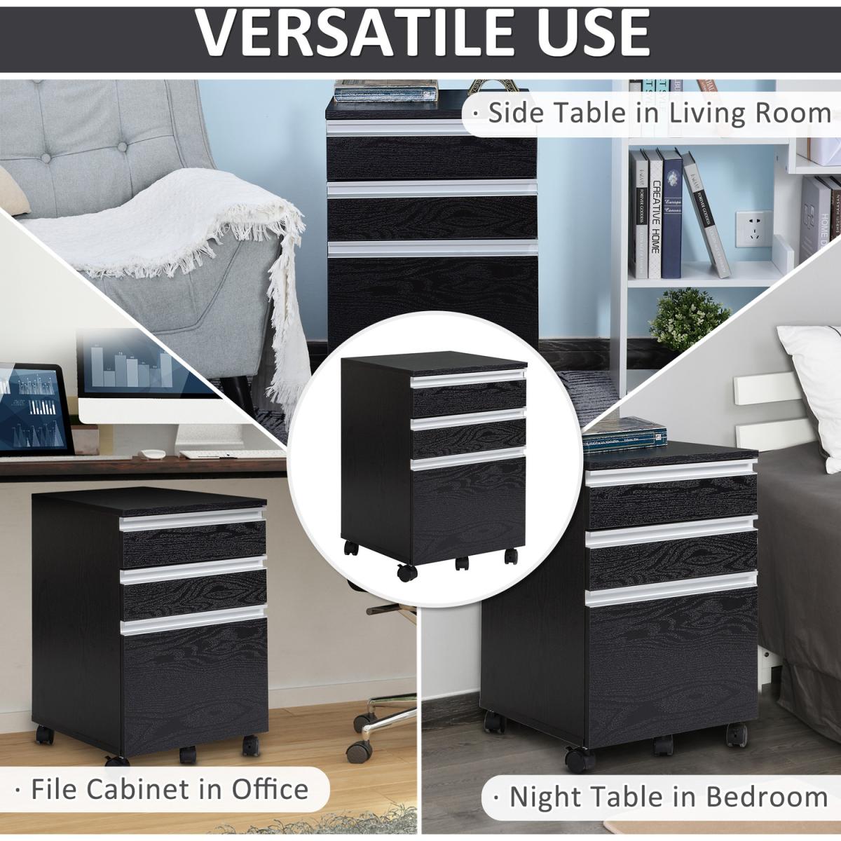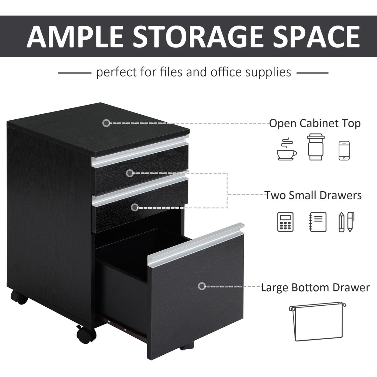If you find your files and paperwork are always messy and unorganised in the home or office, then opt for this filing cabinet from HOMCOM. It features two small drawers and one large, giving you plenty of storage room for everything you need. The long metal handles on the top of each drawer edge add extra strength and allow you to open them easily. The compact design allows it to fit underneath desks/tables, and it's finished with five castor wheels to move around easily. The practical and stylish office helper.