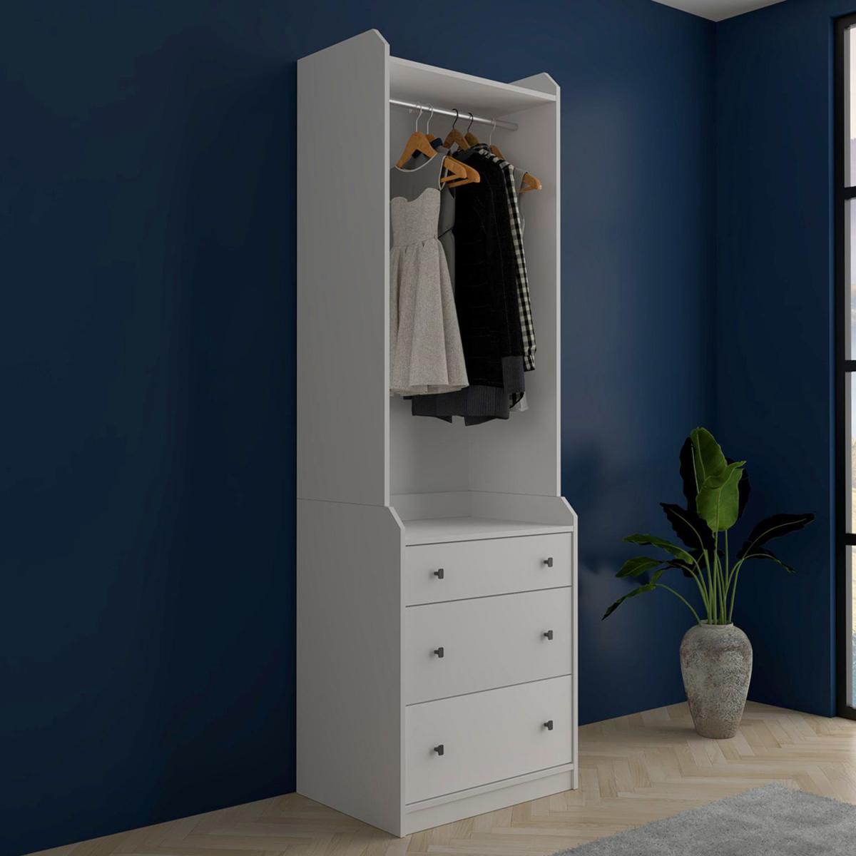 3-Drawer Open Topped Hanging Robe - White