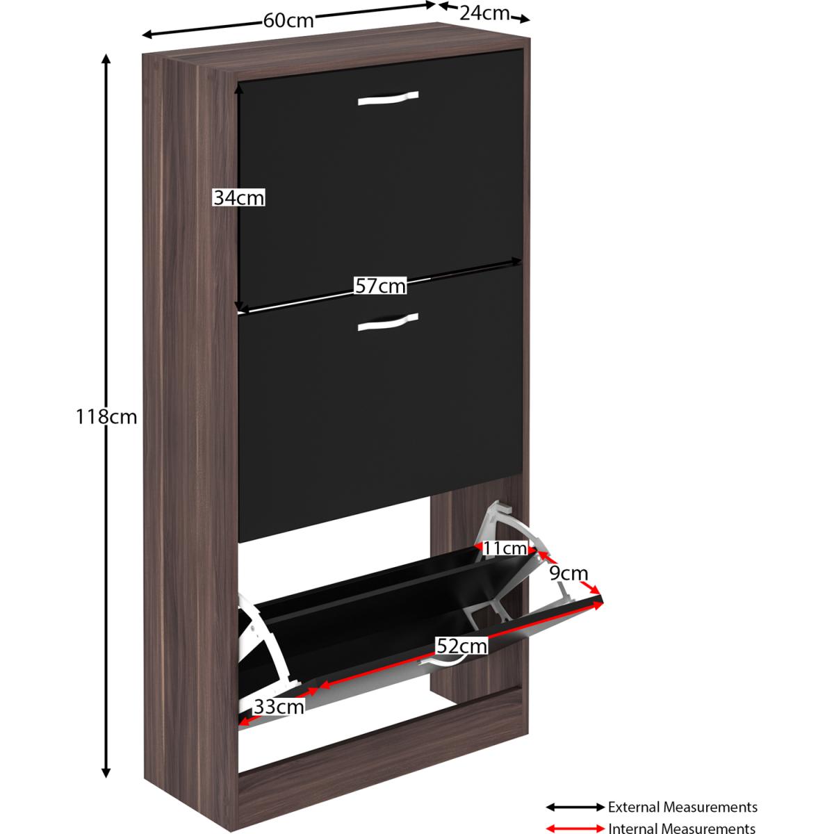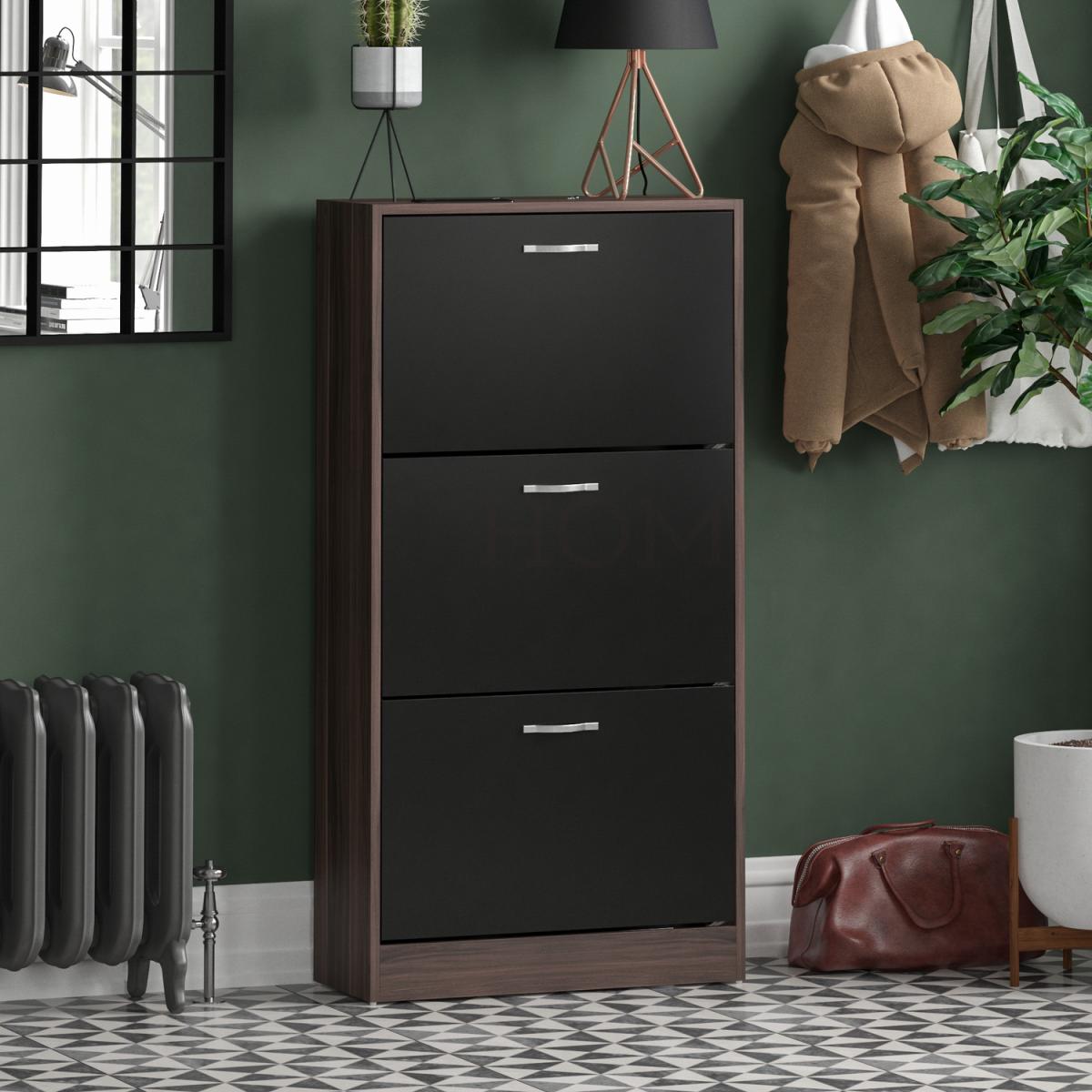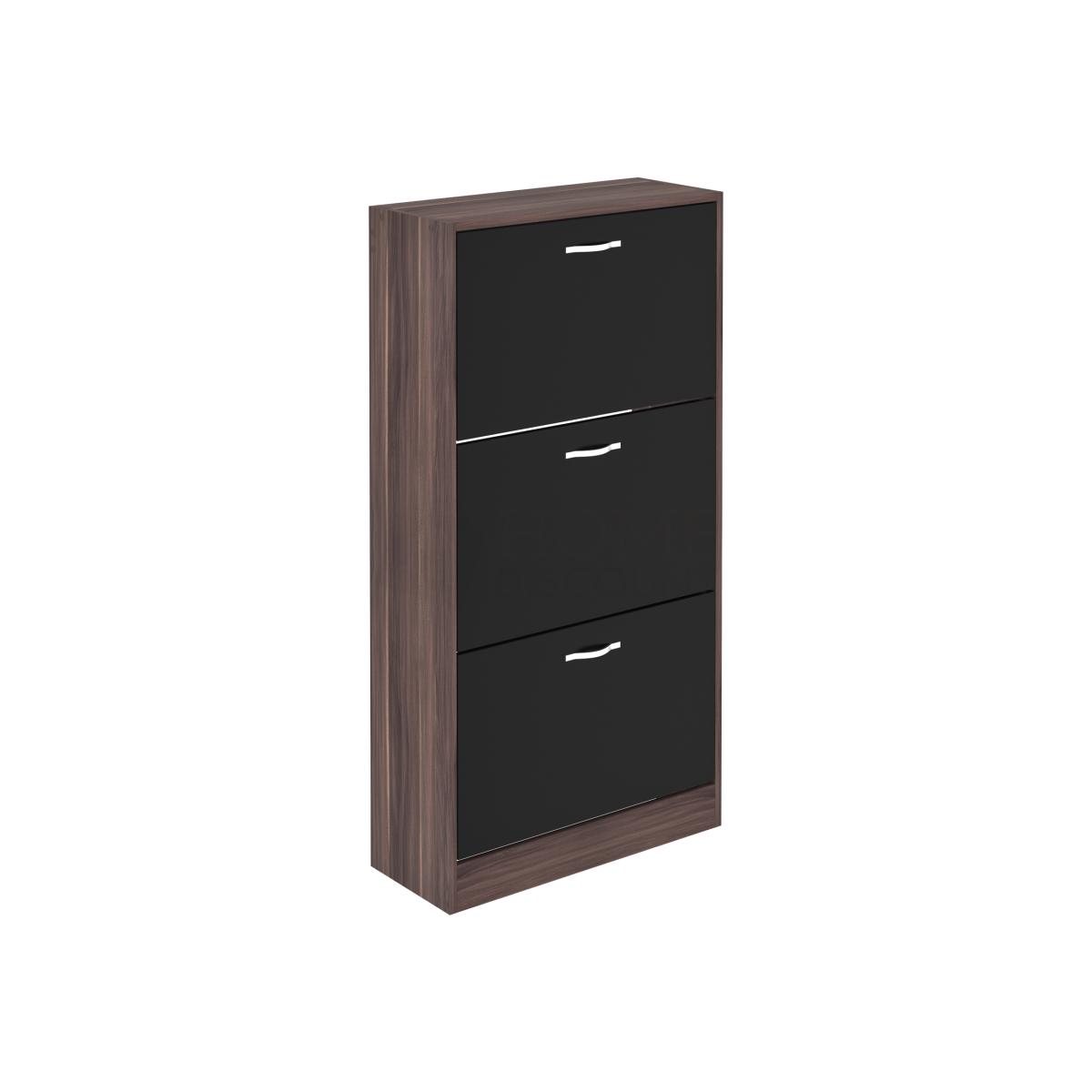 3 Drawer Shoe Cabinet, Walnut and White - Walnut and Black