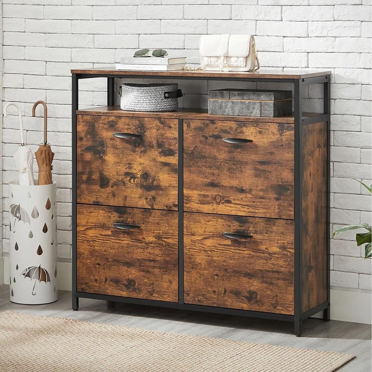 3 Drawer Shoe Storage Cupboard with 3 Flip Drawers - Brown and Black