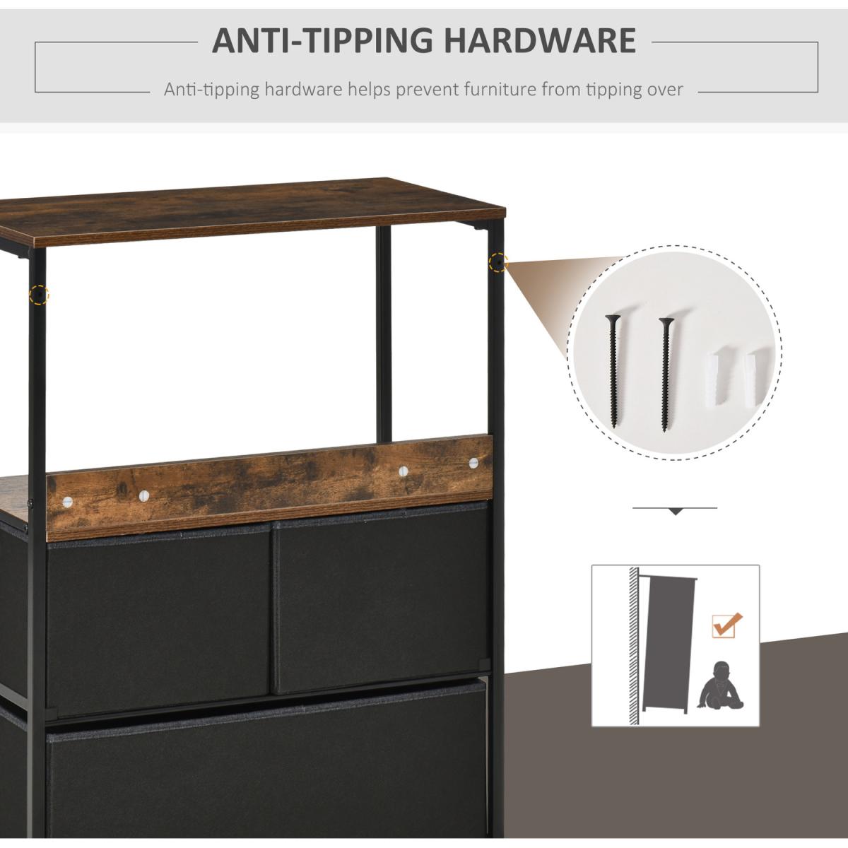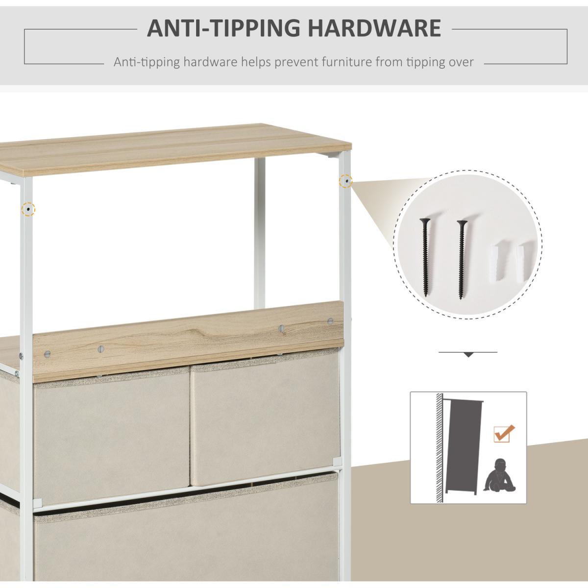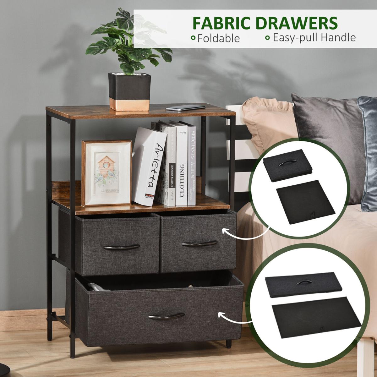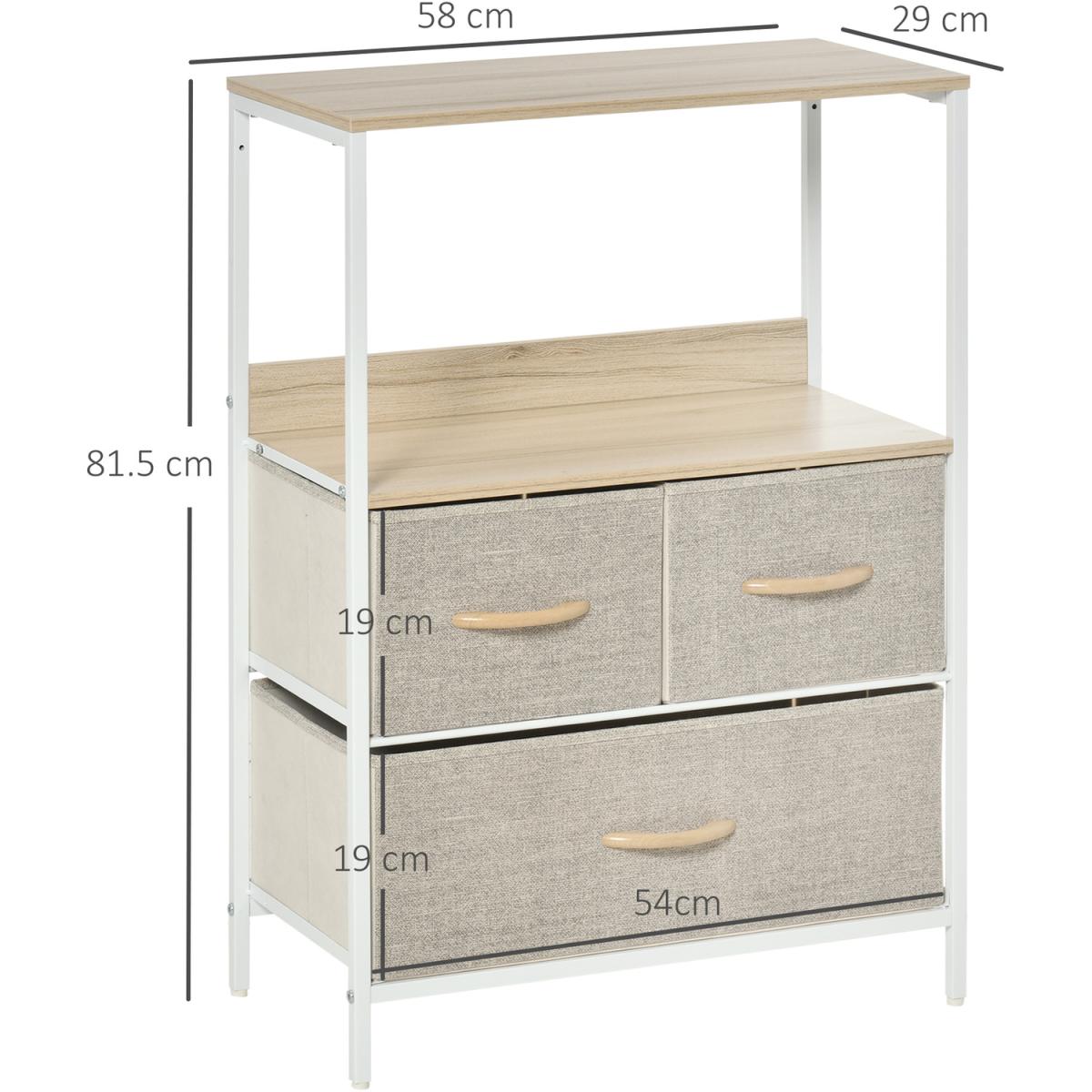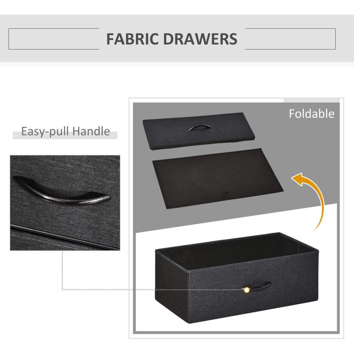Opt for a soft approach to home storage - go for this fabric drawer unit from HOMCOM. Comes with two small drawers and one large, with two shelves on top to give you plenty of storage and display room respectively. The frame, made from metal, ensures a sturdy core structure, with adjustable bottom feet to keep the balance at all times. Finished with wood-effect handles on the drawers to open and close them easily.