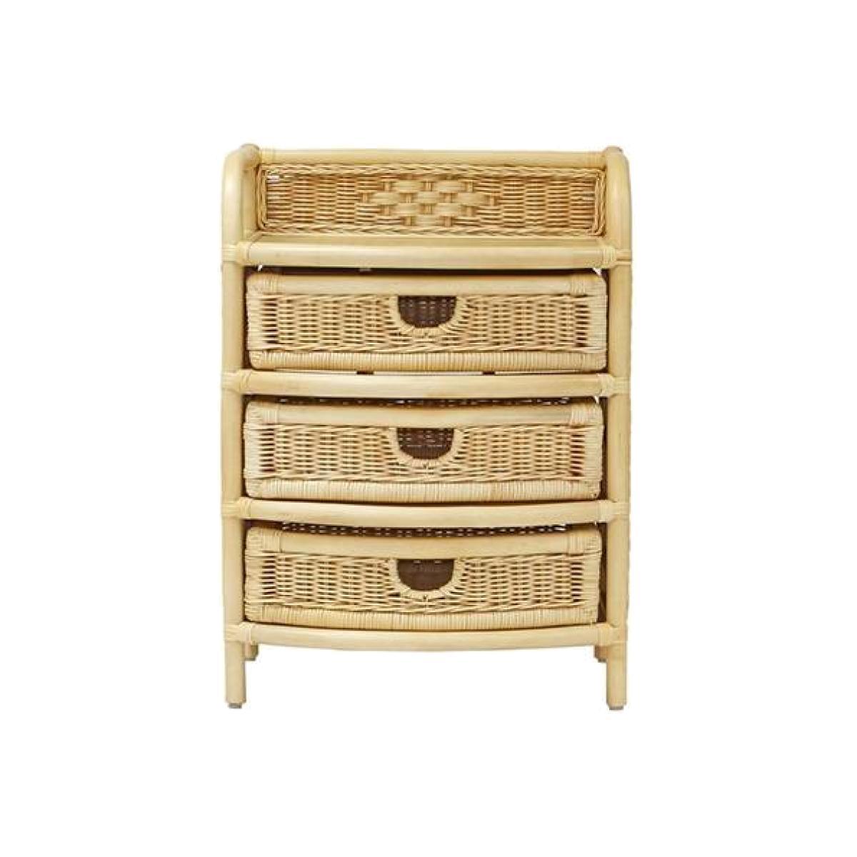 This 3 drawer storage unit combines the intricate detail of rattan with everyday robust practicality of cane. The beautiful handwoven rattan drawer fronts and wonderful wicker detail are surrounded by a solid cane frame, providing the perfect platform to place those everyday accessories.  For even more useful storage in your conservatory view our larger storage units, available in both light natural wash and natural wash. Exclusive hand crafted design Available in light natural wash and natural wash Dimensions: 79cm (H) x 43cm (D) x 59cm (W) 2 Year Manufacturer's Guarantee