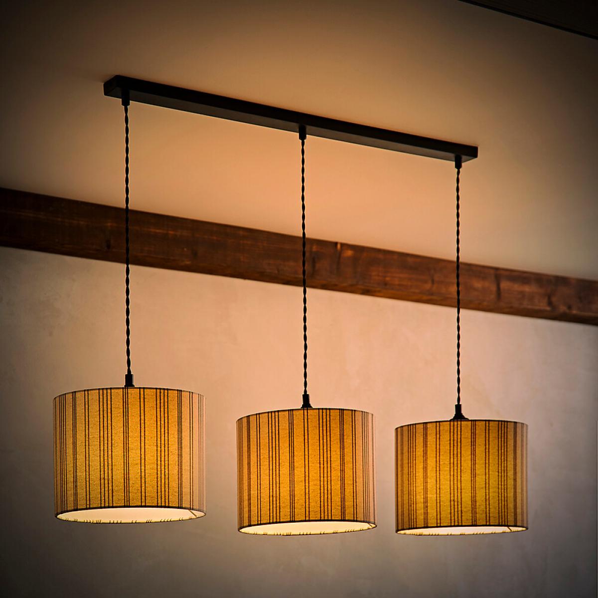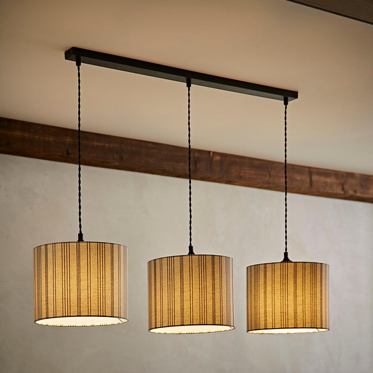 Give your space a glow-up with this matte black 3 drop bar E27 lamp holder. Stylish, sturdy, and effortlessly cool, it comes with 3 on-trend striped linen shades ready to add an industrial edge or a cosy vintage feel. Ideal for pendant lighting, it's easy to install, just add your favourite bulbs and let it shine. Whether you're creating a sleek loft look or a warm cafe vibe, this bar lamp holder brings instant charm. Warning: may cause uncontrollable admiration from guests!