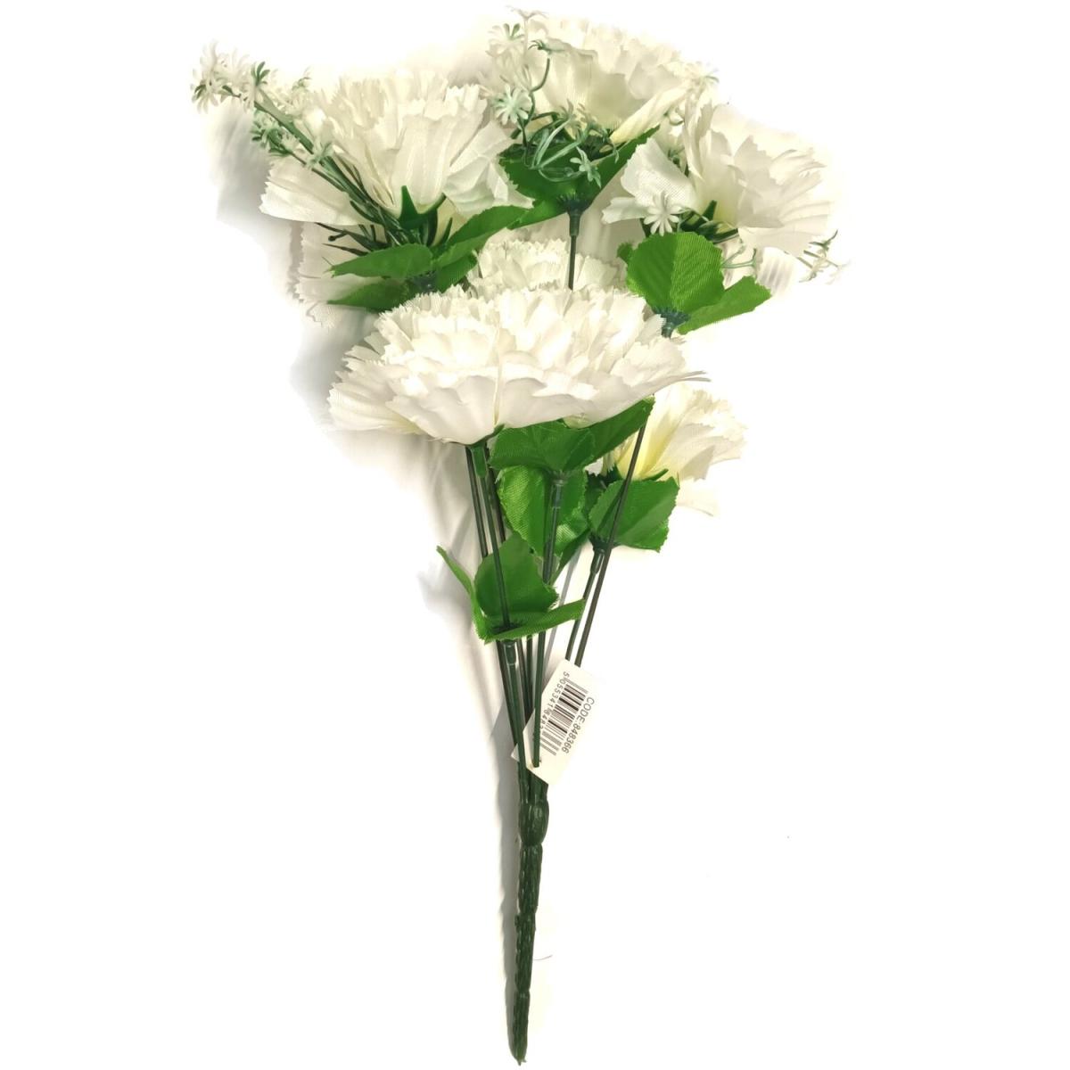 These lovely artificial Carnation plants measure 36cm with stems and have white/ivory flowers. The flowers are soft to the touch giving them an authentic feel. The accompanying foliage is Gypsophila with small white flowers adding aesthetic depth to your display.