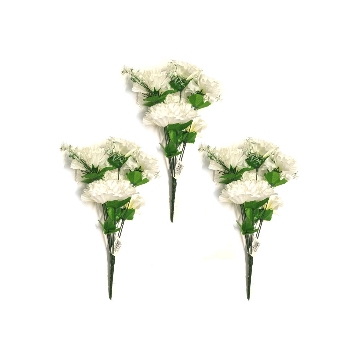 3 Faux Carnation Bush Plants White Ivory Flowers and Gypsophila - White