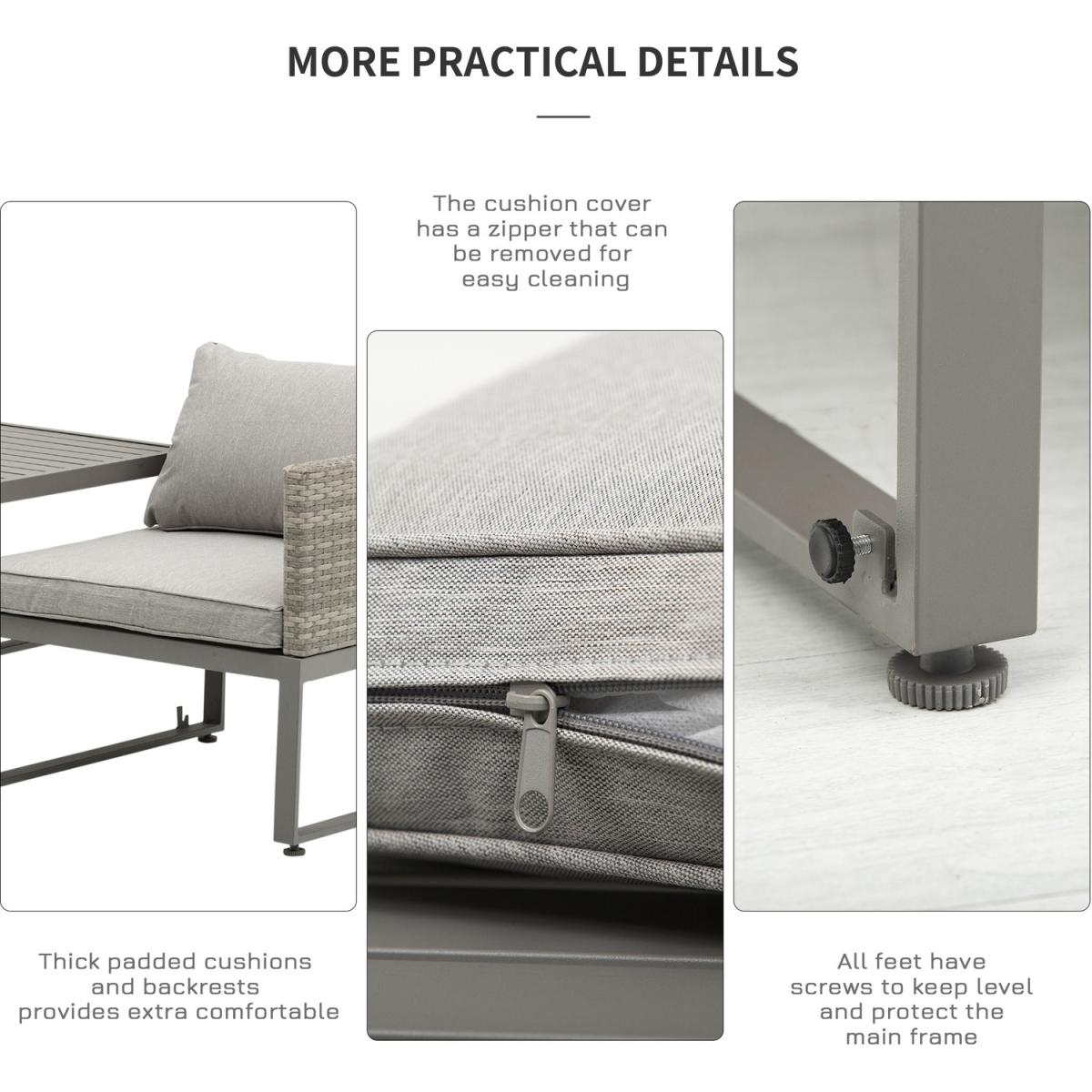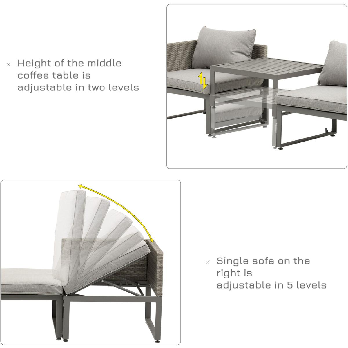 From a sofa to a two-seat and coffee table to a long lounger, this transforming piece, from Outsunny, is bound to make your days outside better than ever before. The frame, made from powder-coated steel, is tough and sturdy and supports up to 270kg -in total, it won't wobble or warp when being used. The cornerback of each chair features a PE wicker panel in mixed grey, helping it to blend in with your garden furniture and support you when leaning back. It comes with plush cushions on the seats and back from the comfort and the right seat can be set to five different angles. Positions are as follows: two seats with a middle coffee table,three-seater sofa, lounger with a five-position headrest.