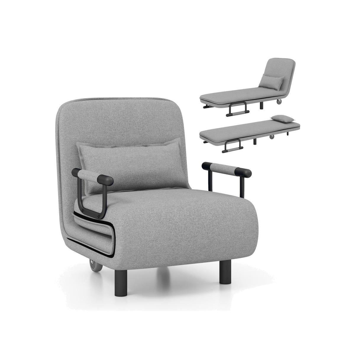 Our 3-in-1 sofa bed offers you comfort and versatility! With an overstuffed backrest, integrated armrests, and a cosy seat cushion, it offers you a comfortable sitting experience. The 5-level adjustable backrest allows you to find the optimised position for reading, watching, or sleeping. It also comes with a lumbar pillow for additional comfort. Thanks to its convertible design, this trifold chair bed combines a sofa chair, a chaise lounge, and a single bed for a variety of purposes. Plus, the breathable fabric and high-density sponge ensure a skin-friendly touch.