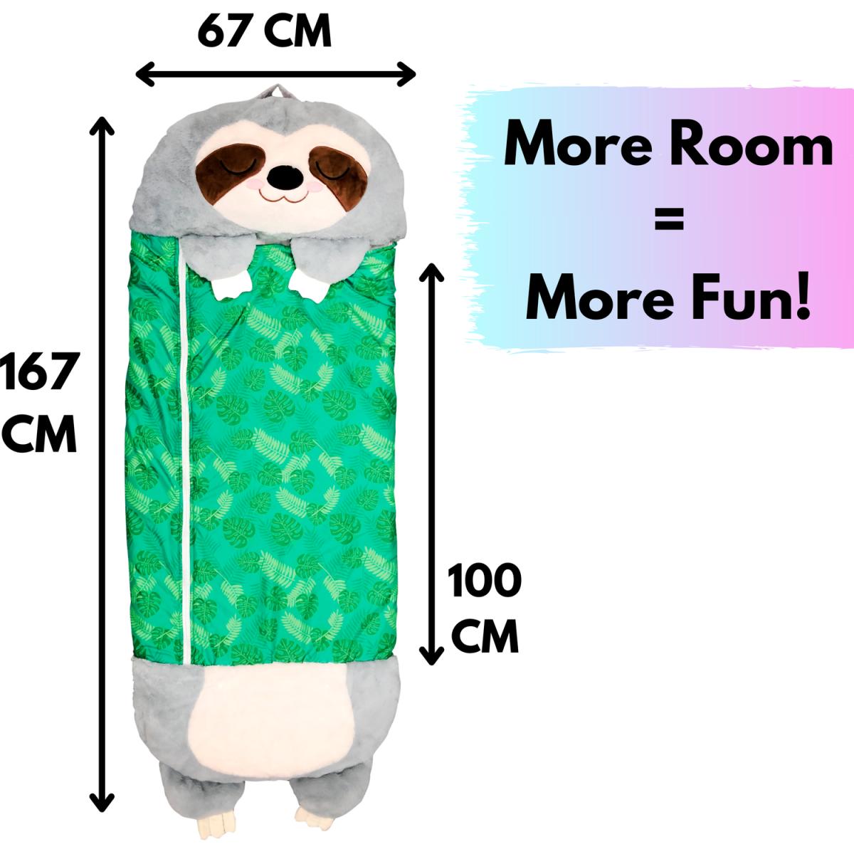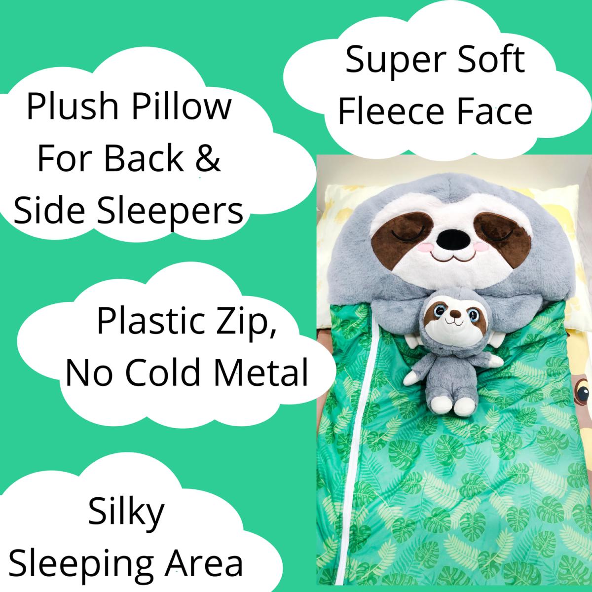 Room To Sleep, Play & Grow! Children's sleeping bags are as big as their imagination, the large 167cm size (100cm Sleeping area) gives your child lots of wriggle room no matter how they like to sleep and the attached fluffy pillow is plump giving support to the back and side sleepers. A Piece Of Home Wherever by using the carry handle when folded down into the soft toy kids pillow shape your child can take a home comfort with them to sleepovers, garden camping when staying with relatives or on long journeys.