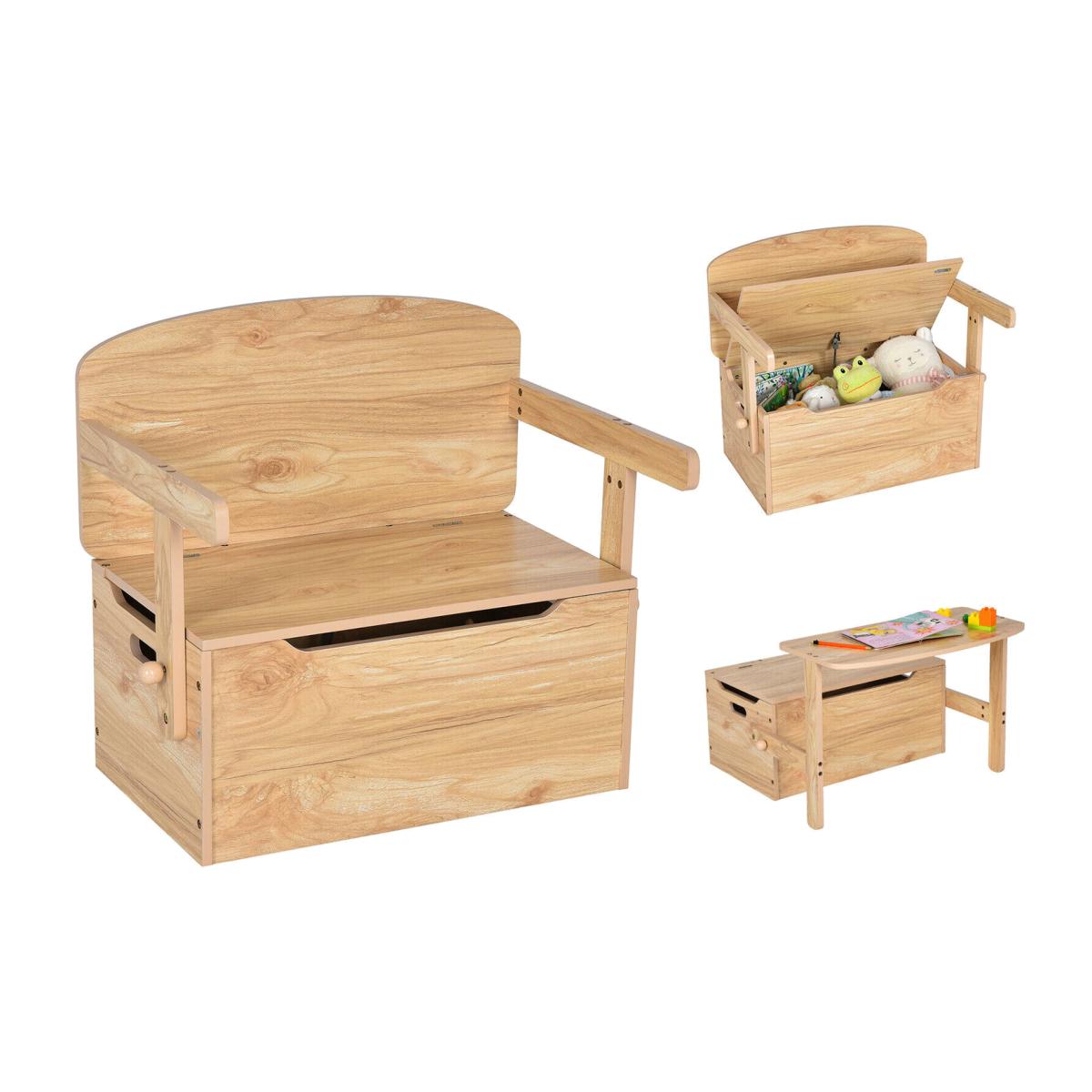 Tired of a toy-covered floor Our kid's convertible storage bench is a perfect companion for your growing kids. And the large toy storage space helps to keep your home tidy and clean. This versatile bench with a 3-in-1 design can be easily converted from a stool to a desk set, which is ideal for the kid's room, kindergarten, art playroom and more. It can be used as a table and chair set for studying, drawing, and eating, or it can be turned into a stool for sitting and changing shoes.