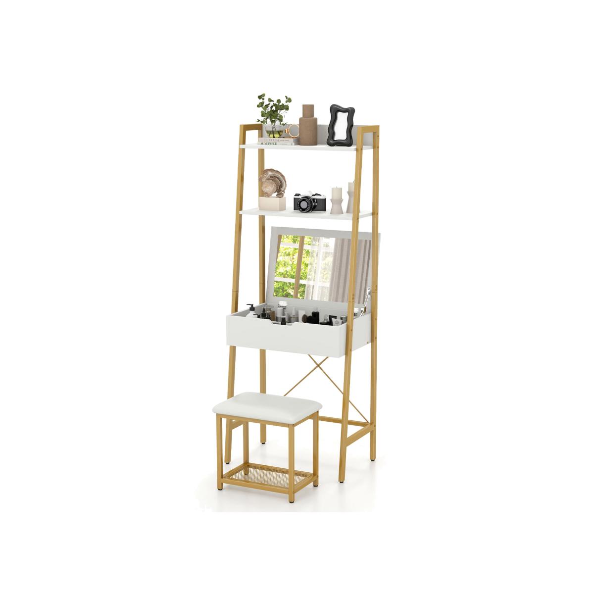 The 3-in-1 vanity is a versatile piece that combines functionality with a touch of glam. I love how the gold finish instantly elevates the space, making it suitable for contemporary or glamour-inspired interiors. It works particularly well in bedrooms with a soft colour palette or monochrome schemes, adding a focal point without overpowering the room. Practical styling tips include layering with a few curated accessories or small plants for colour and texture, and keeping the mirror clear to maximise its reflective benefit. Pair it with a statement chair or stool to add comfort and personalise the look - it’s perfect for small spaces or as a statement piece in a vintage or modern setting.