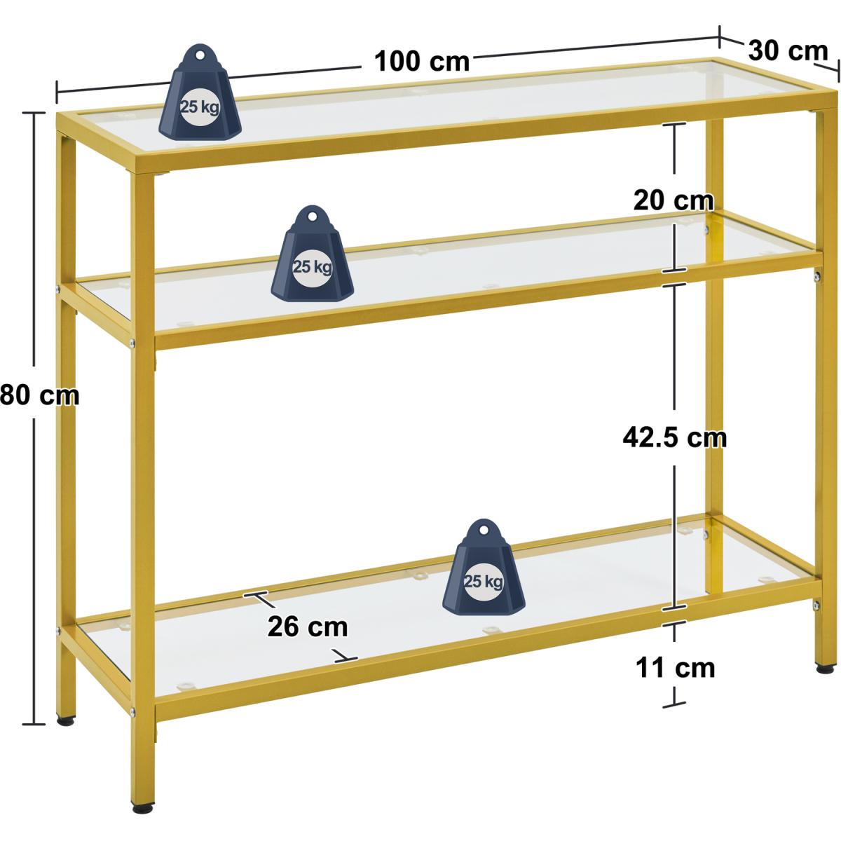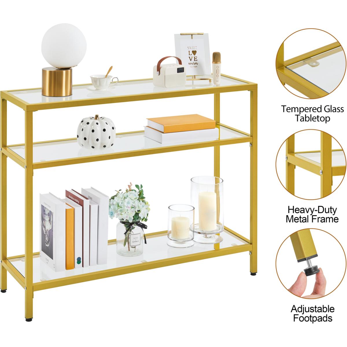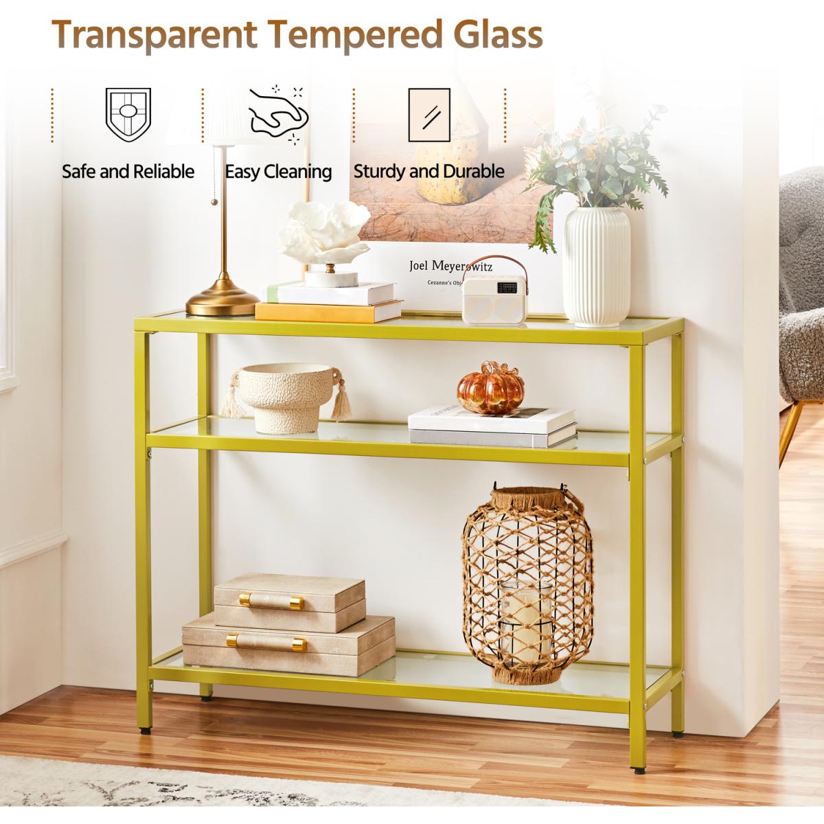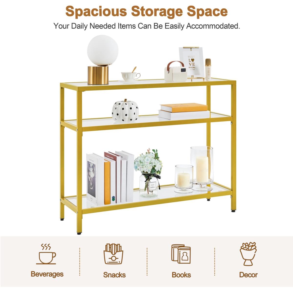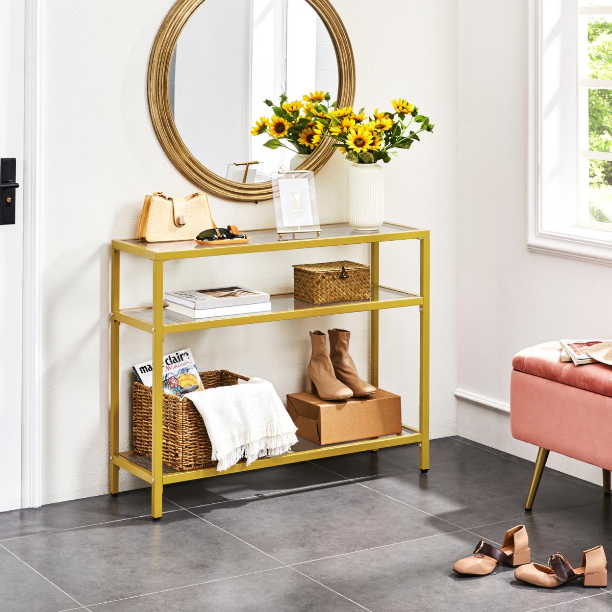 Crafted with strong tempered glass and a protective coating covered iron, this porch table boasts excellent durability, stability and weight capacity. The multilayer structure allows it to accommodate books, magazines, and display plants and decorations. You can also apply it in your study to work as your bookshelf, in your kitchen to serve your delicate dishes or by your sofa to accommodate the stuff you need at hand. With classic colour, simplest lines and transparent texture, this 3-layer console table can easily integrate into your room decores to serve as an elegant but practical addition to your tasteful space.