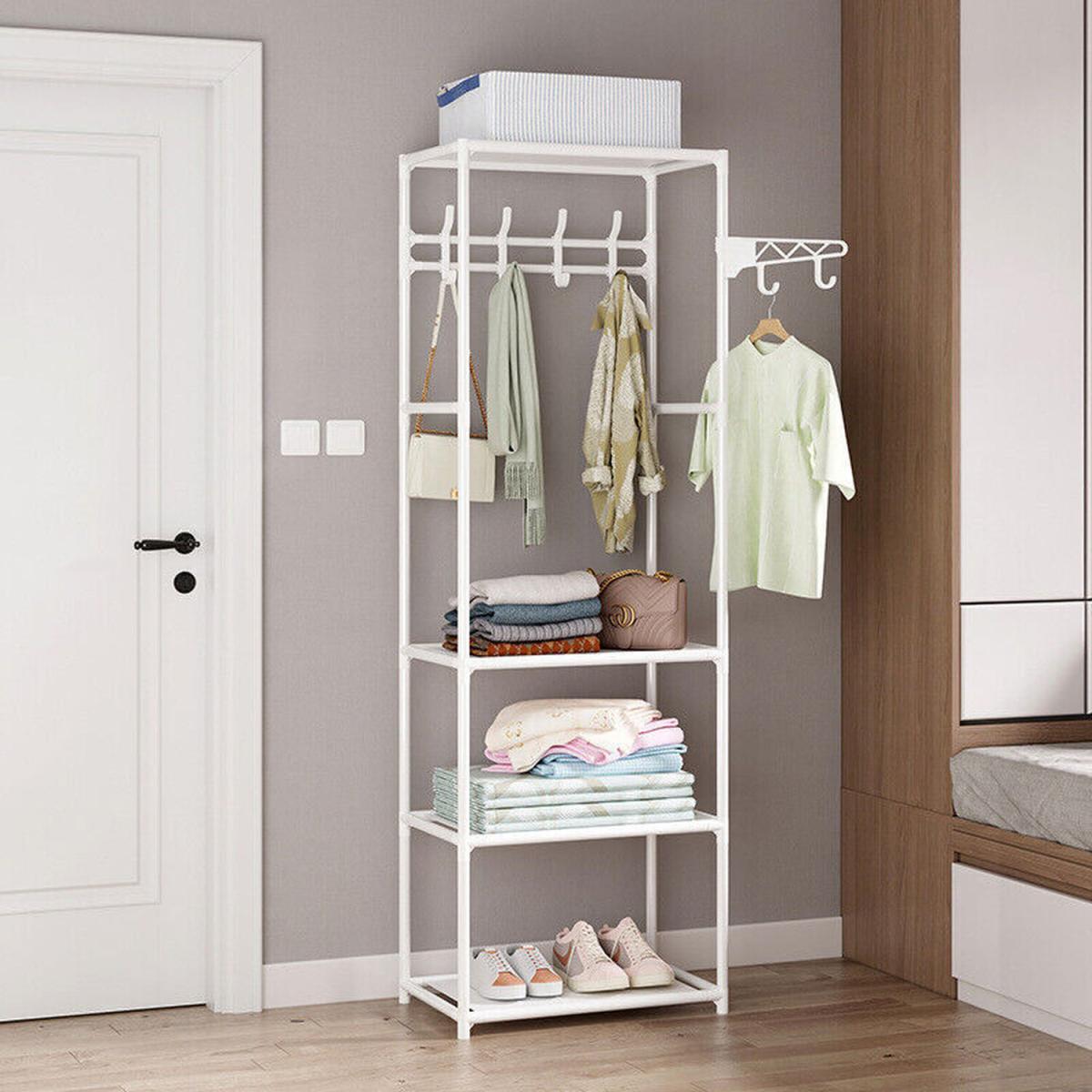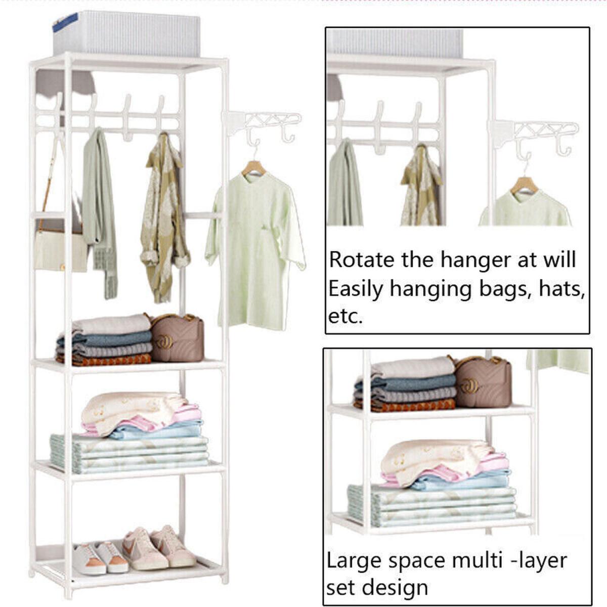 3 Level Storage Simple Hanging Coat Rail - White