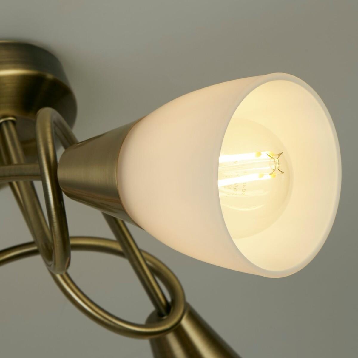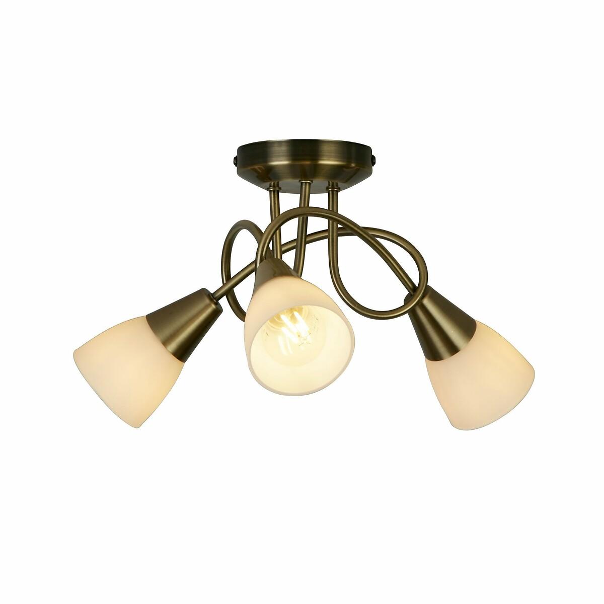 Twisted antique brass finished metal provides 3 arms for beautiful frosted white shades. Although contemporary in design this ceiling light would suit both modern and traditional interiors. Product Dimensions:690cmx36cmx36cm Parcel 1 Packaged Dimensions: 26cmx26cmx15 Weight: 950. Composition: Steel and Glass This product will be dispatched by one of our trusted suppliers. You’ll be contacted by their selected courier about your delivery.