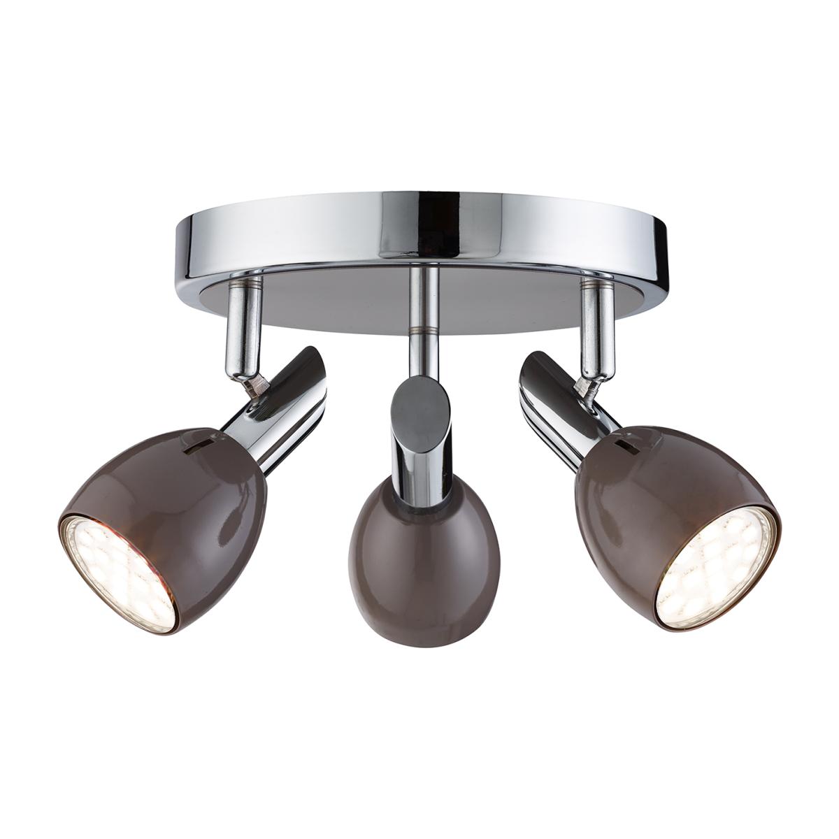 This 3 Light Grey and Chrome Spotlight has a contemporary chrome finish for a sleek and stylish appearance. The smooth domed spotlights are fixed to the circular base with slim stems and are adjustable for direct illumination where needed.