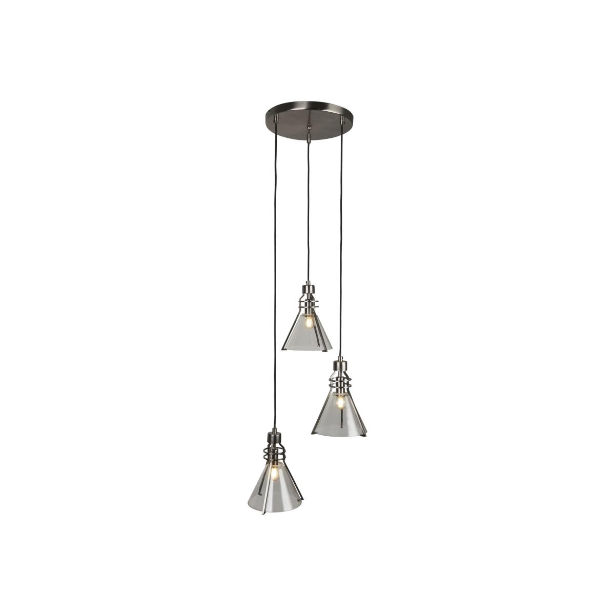 This on trend Industrial style multi-drop pendant will instantly elevate any home. This pendant has 3 triangular frame design glass shades, and contrast black suspension and ceiling plate, creating a focal point for any room.