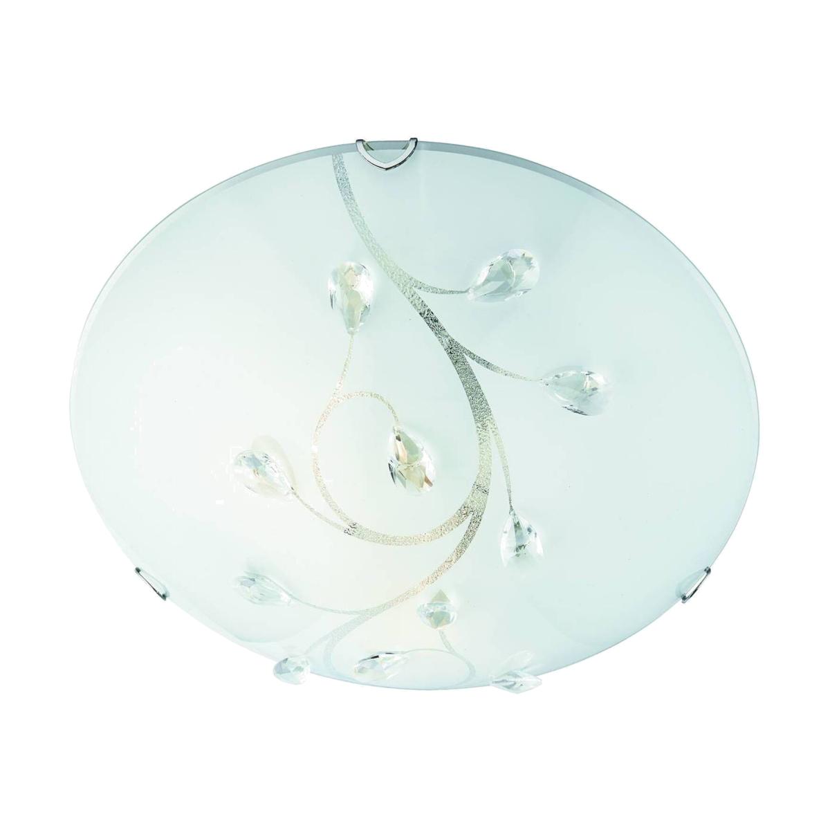 The crystal glass decoration on this flush fitting transforms it into a beautiful ceiling light which will influence the room in a positive way. The fitting is available in two different sizes, allowing you to choose the best one for the size of your room. The frosted glass allows the light to shine through while adding to the look of the fitting. This flush fitting is ideal for a room with a low ceiling.