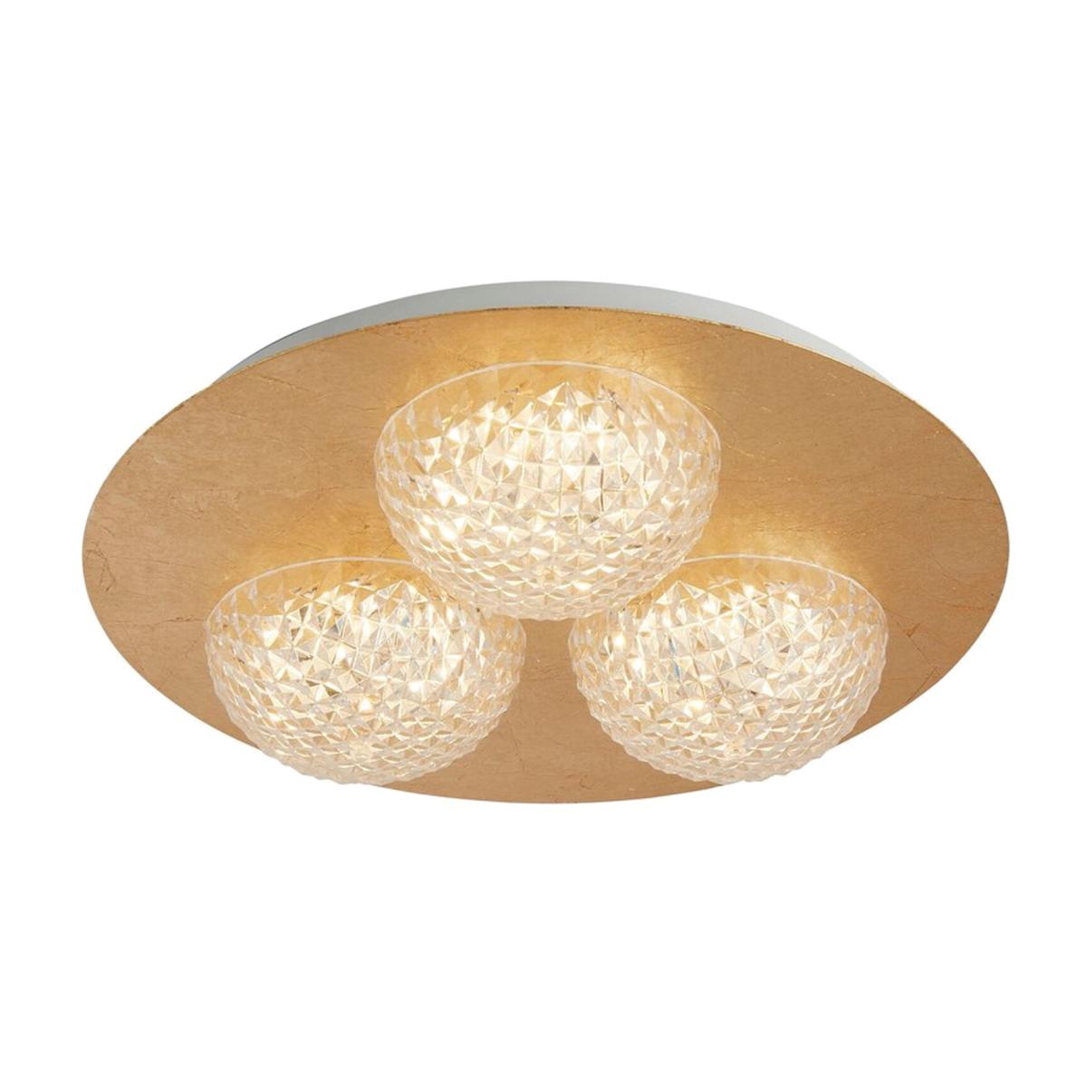 3 Light Round Led Ceiling Light - Gold Leaf With Clear Acrylic - Clear