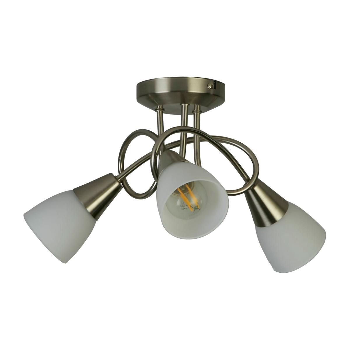 Twisted brushed silver metal provides 3 arms for beautiful frosted white shades. Although contemporary in design this ceiling light would suit both modern and traditional interiors. Product Dimensions:690cmx36cmx36cm Parcel 1 Packaged Dimensions: 26cmx26cmx15 Weight: 950. Composition: Steel and Gloass This product will be dispatched by one of our trusted suppliers. You’ll be contacted by their selected courier about your delivery.