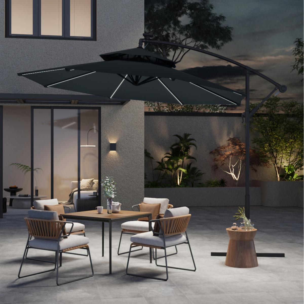 3 Meter Cantilever Parasol with Crossing Base and Lights - Dark Grey
