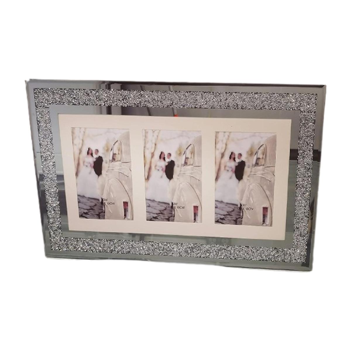 3 Multi Aperture Picture Photo Frame Horizontally Crushed Jewel - Silver