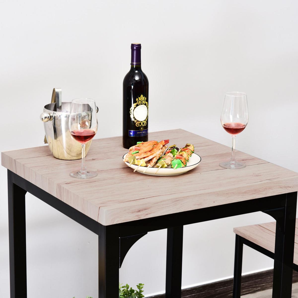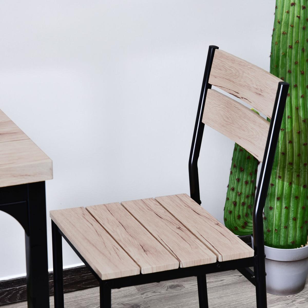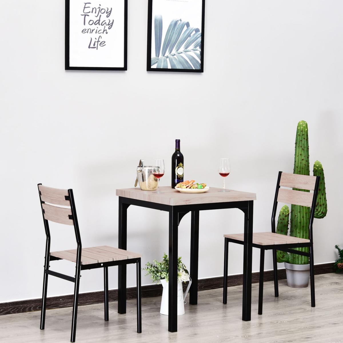 3 Pcs Compact Dining Table with 2 Chairs Set - Light Wood Grain