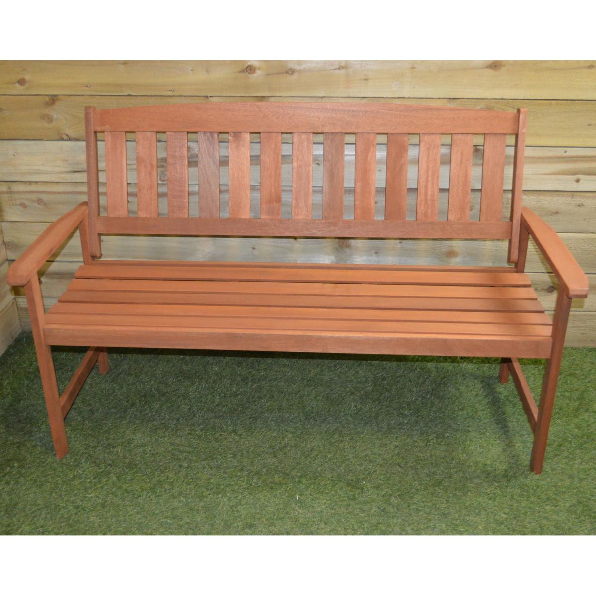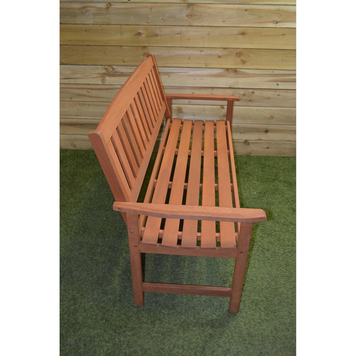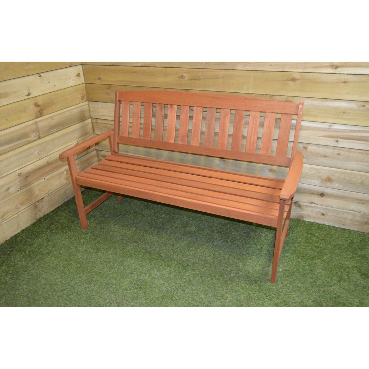 3 Person Traditional Wooden Bench. Comfortably seats 3 people. Ideal for all kinds of gardens, patios and decking. High quality durable rigid hardwood construction. Weatherproof finishes with brass fittings. Simple and easy to assemble.