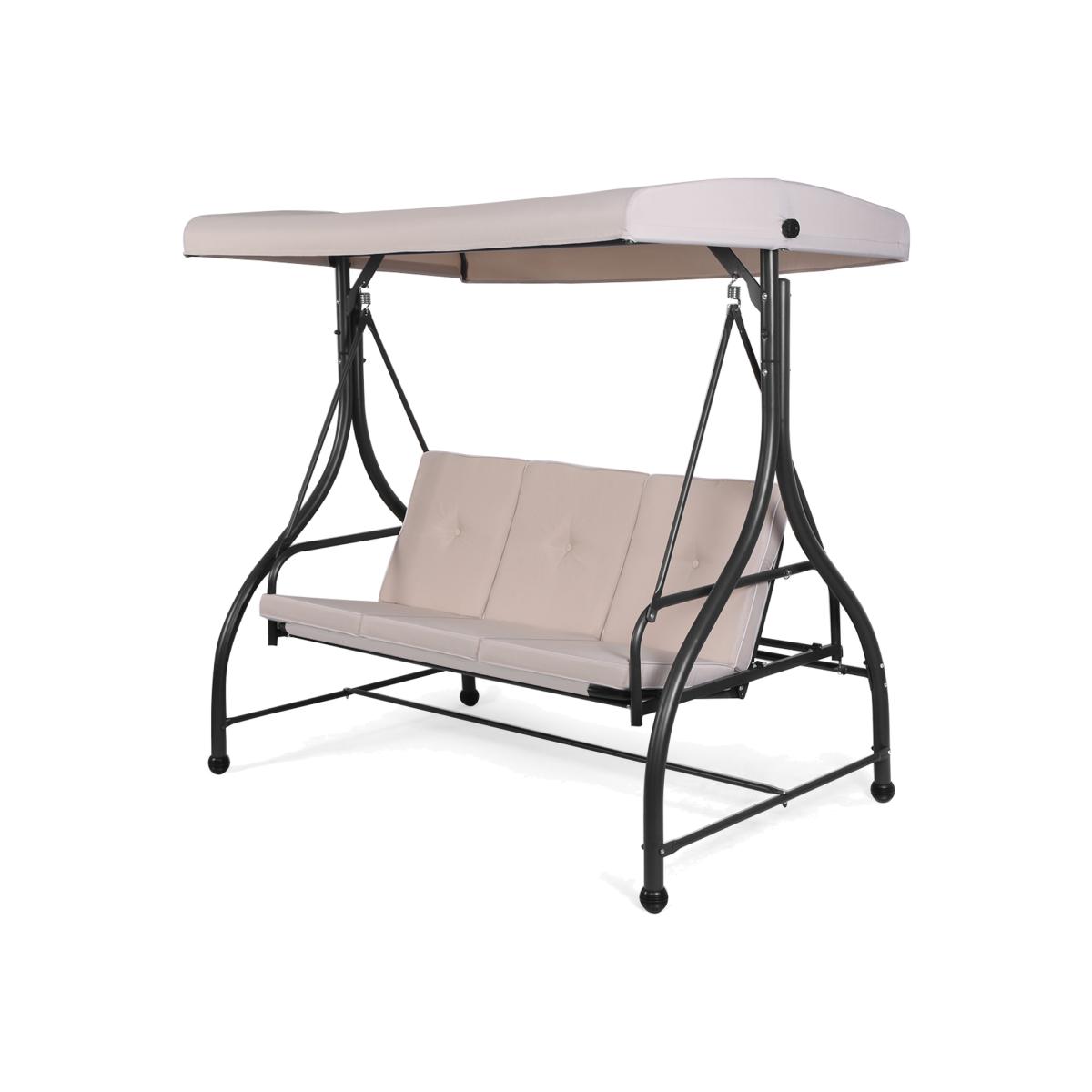 3-Person Convertible Canopy Swing with Cushion Seats - Beige