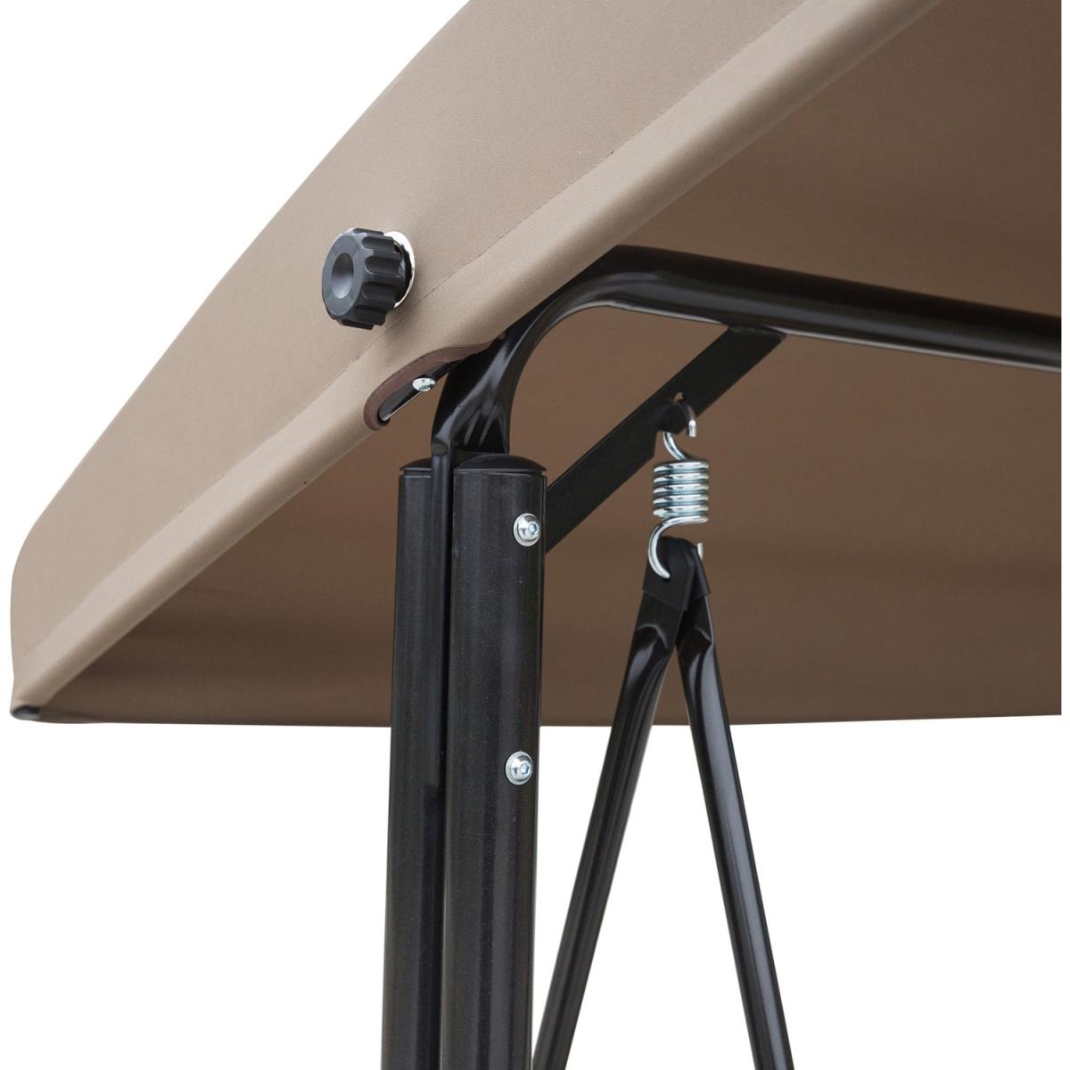 This three-person swing is an excellent addition to a garden patio or outdoor seating area, offering both comfort and style. The brown frame and neutral canopy make it versatile enough to complement a variety of design schemes, from rustic and traditional to contemporary outdoor spaces. It works particularly well in relaxed, casual settings but can be dressed up with cushions or throws in vibrant colours or textured fabrics to add personality. For styling tips, consider pairing it with a set of weather-resistant cushions, a cosy outdoor rug underneath, or even string lights overhead for evening lounging. Its practical design makes it a great anchor piece for creating a welcoming outdoor retreat that encourages lingering and conversation.