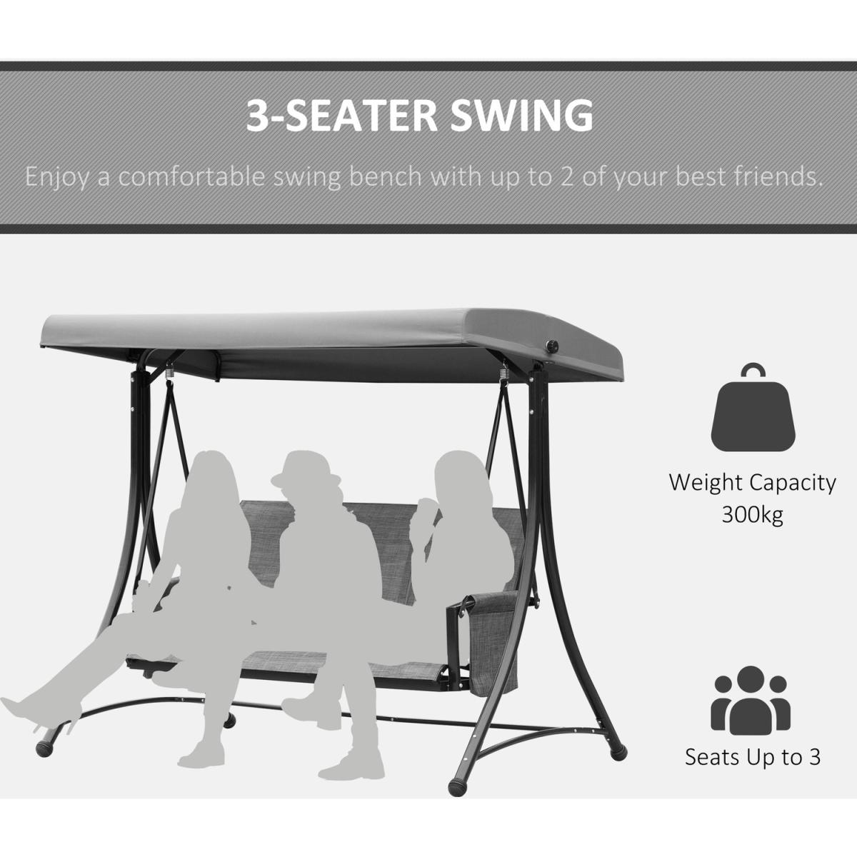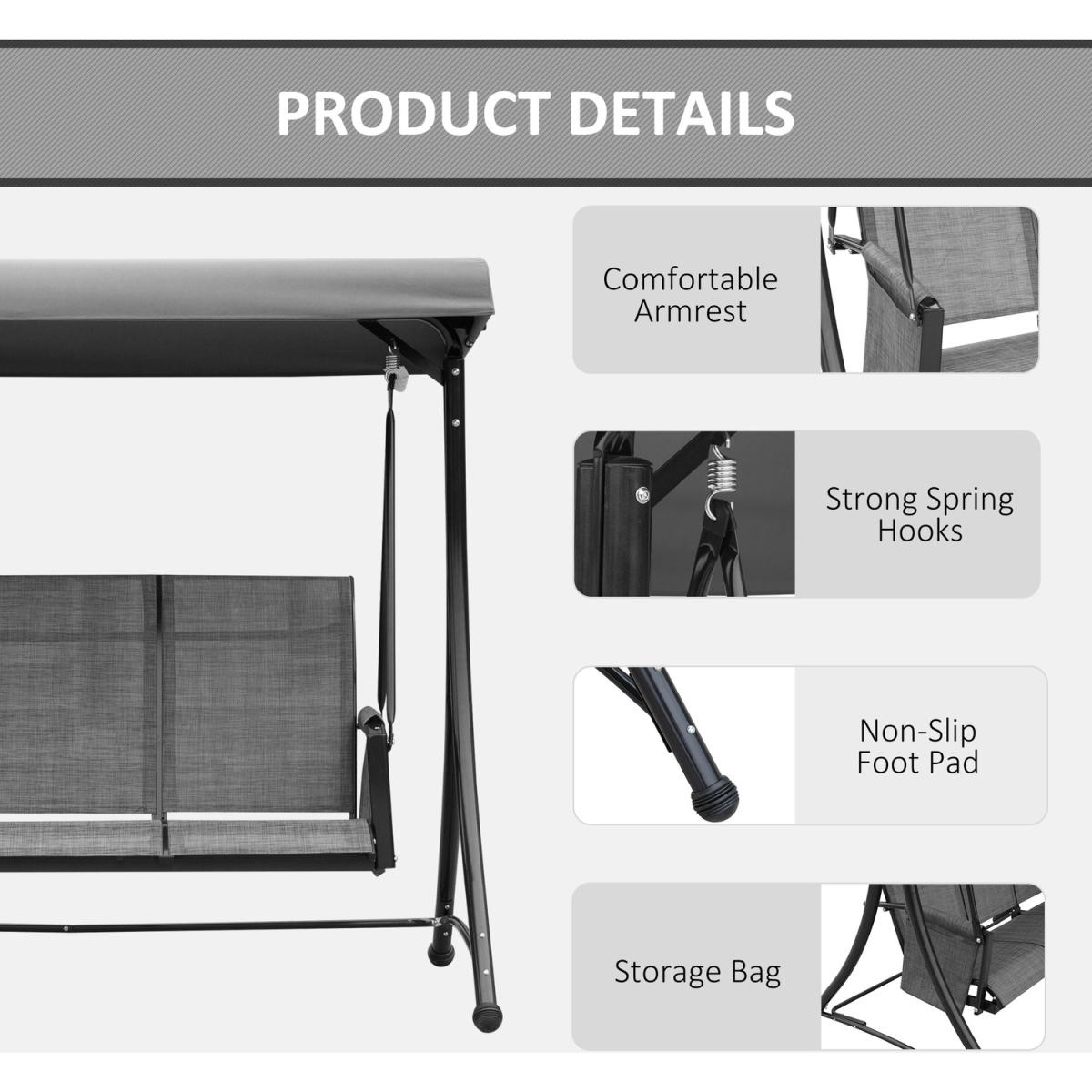 3 Person Outdoor Patio Porch Swing Chair - Charcoal Grey