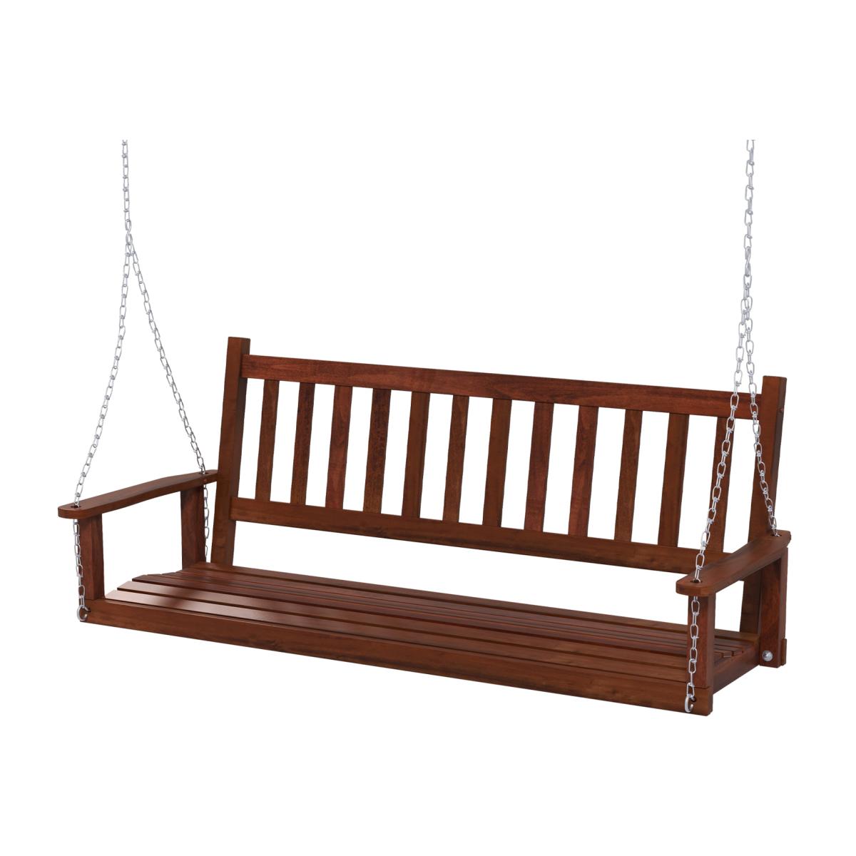 Adjustable & sturdy galvanized metal chains allow you to find the most suitable swinging height. You can hang it on the ceiling, tree or swing stand and enjoy swaying with your loved one. Made of solid poplar wood, our hanging bench chair supports up to 360 kg. Furthermore, to offer you comfort and relaxation, it is designed with a slatted backrest, curved seat and humanised armrests. 3-Person Outdoor Porch Swing - Brown