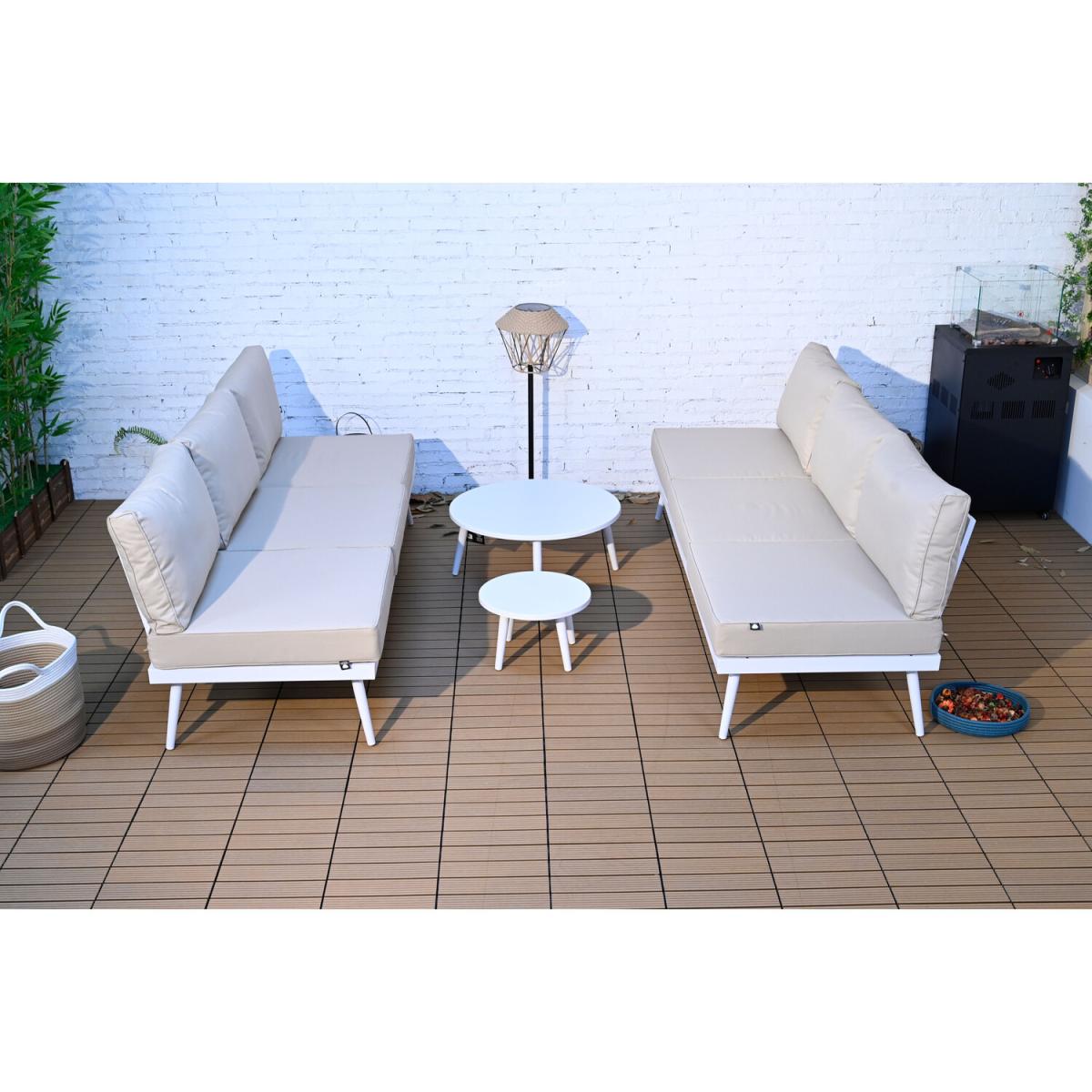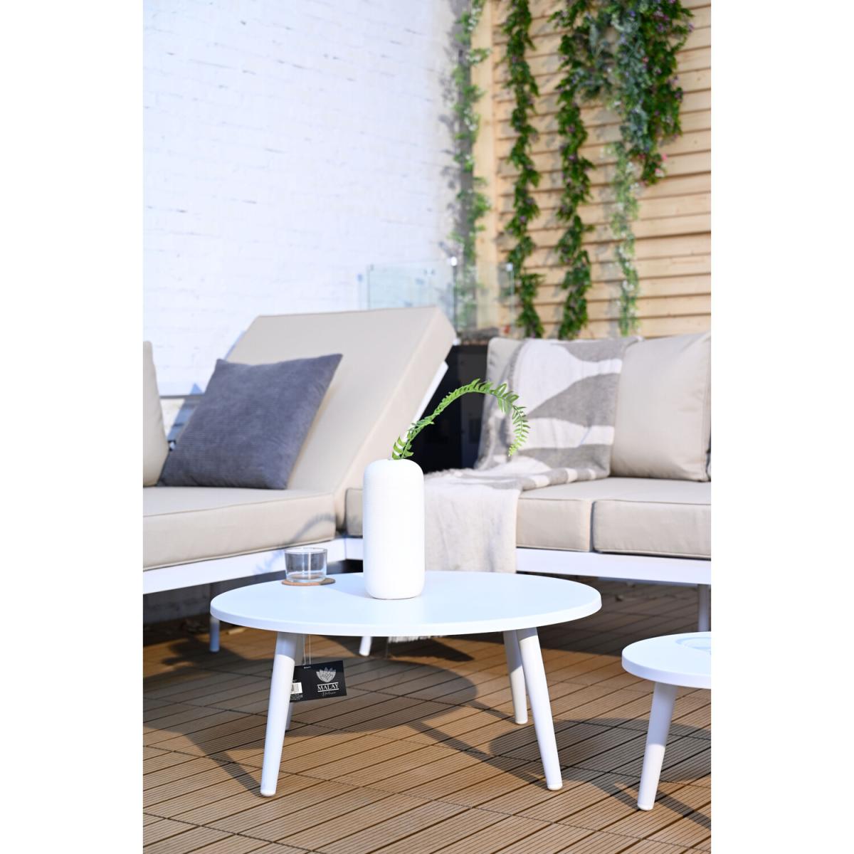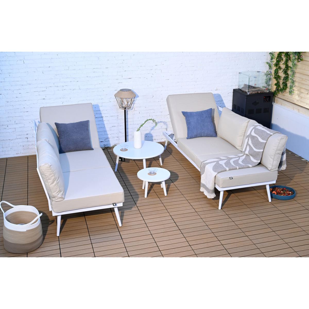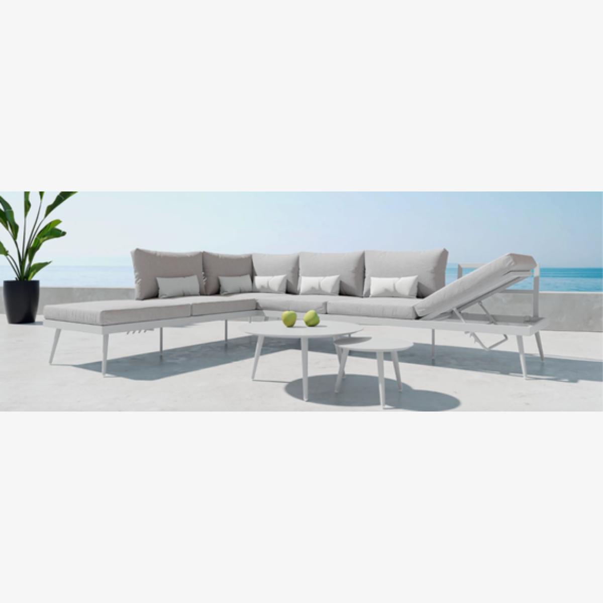 This Palermo Transformer Set is incredibly modern and sophisticated. The stylish sofas can be arranged as a corner unit, individual sun loungers or other positions to suit your needs and space. Featuring a lightweight aluminium frame and luxurious seat and back cushions for ultimate comfort. This diverse sofa set is ideal for garden parties, BBQs and family get-togethers. The gorgeous white tables are perfect for drinks and snacks, making it a terrific way to relax and soak up the sun. The grey cushions will complement your garden and add a contemporary feel to your outdoor space. This wonderful sofa set will make a fantastic furniture centrepiece and is guaranteed to impress.