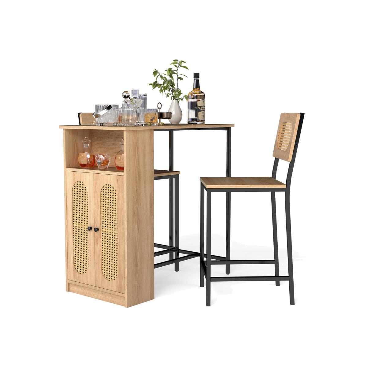 Enjoy wonderful dining times with our 3-piece bar table and chairs set! This counter height kitchen table and stools set offers a practical storage solution with a 3-position adjustable shelf, providing plenty of space for your belongings of varying heights. With an ergonomic angle between the backrest and seat, the bar chairs invite you to sink into comfort. Both the table and chairs include built-in footrests to enhance overall coziness. Supported by sturdy metal frames, the pub dining set is built with durability and sturdiness.