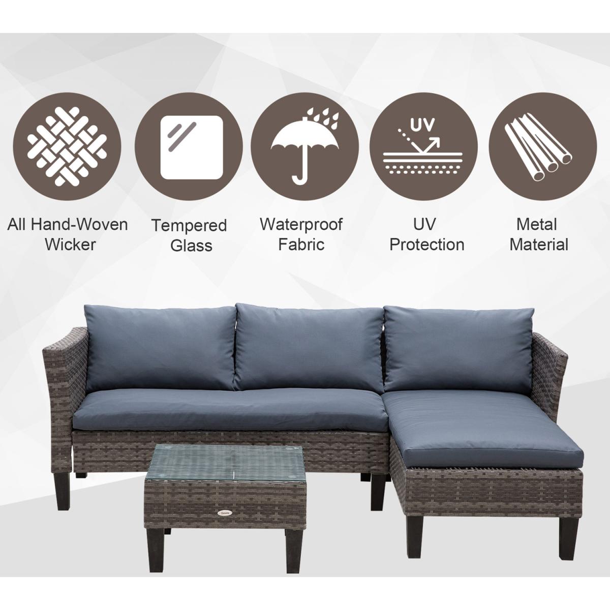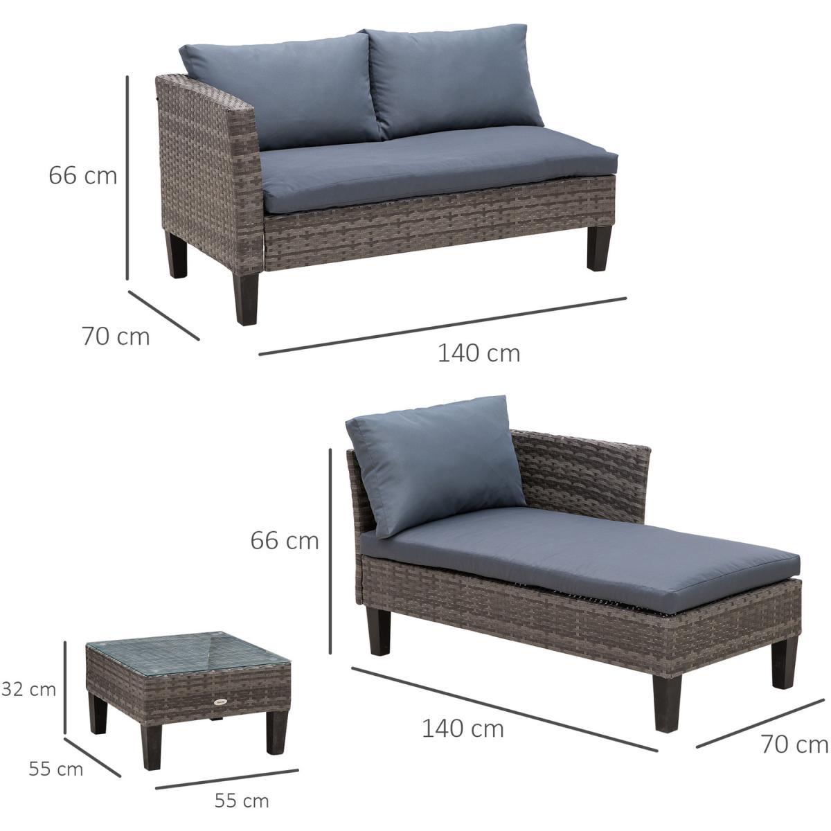 Make summertime lounging in the garden better than ever before - choose this stylish set for comfortable seating you'll find hard to resist. Included in the package are three pieces: two two-seater sofa and a matching square table, where solid metal forms the underlying structure for a stable frame, with PE wicker rattan wrapped around - allowing the set to work with your other garden furniture and be protected against mild weather. Thick cushions on the seats and backs are perfect for sinking into, with removable and washable covers to keep them clean and fresh. A thick tempered glass tabletop adds a sleek feel to the set, with thick legs to ensure balance and stability.
