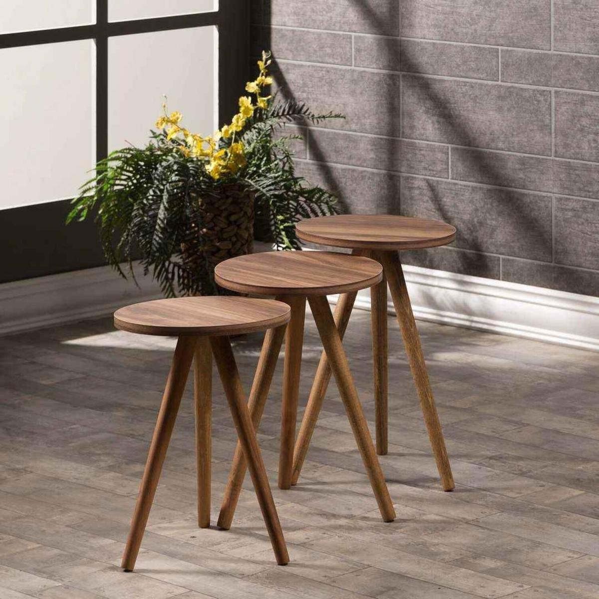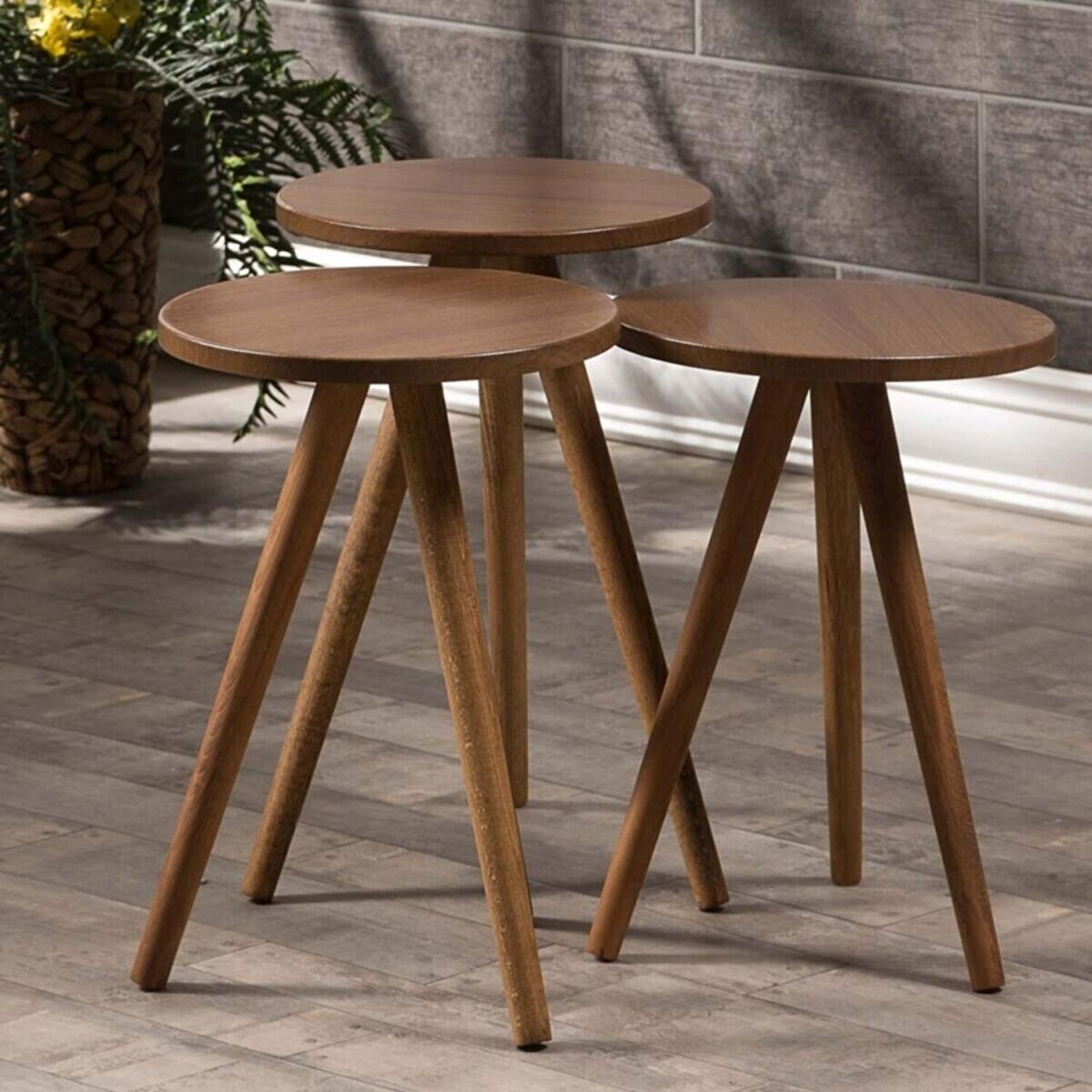 High-Quality Particleboard Nesting tables, Bring a streamlined modern style to your seating ensemble with this retro side table. Modern Furniture Decor composes of rustic design, Antirust and Waterproof Tray, Small Sofa Side Table for Living Room, Hallway, Bedroom, Garden, Balcony, and Snack Coffee Table. Space Saving Design, The set includes 3 nesting tables which are ideal for using separately or stacked together on different occasions. However, the small table can also fit neatly under the larger table for easy storage, making this a great furniture set for a small space. They can also be used as bedside tables, side tables, end tables, round coffee tables, telephone tables or nightstands making them a versatile living room furniture set. Round design can be placed in corners to save space.