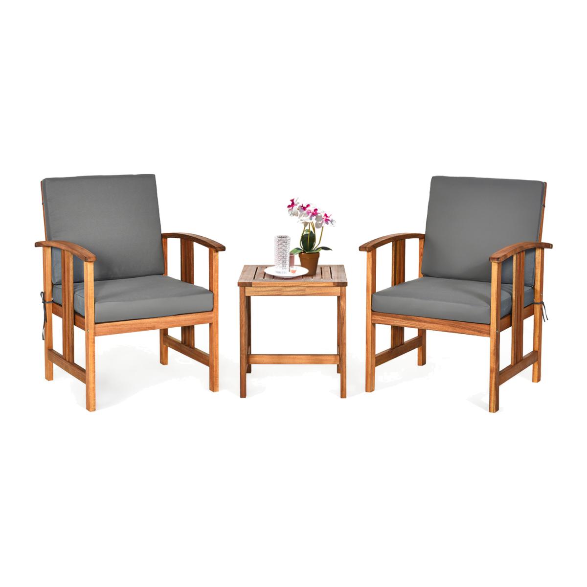 3-Piece Outdoor Furniture Padded Sectional Conversation Set - Grey