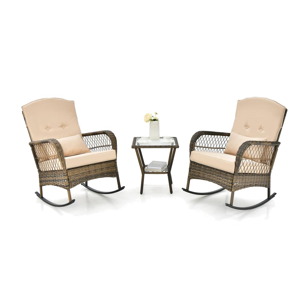3-Piece Outdoor Rocking Chair Table Set - Brown