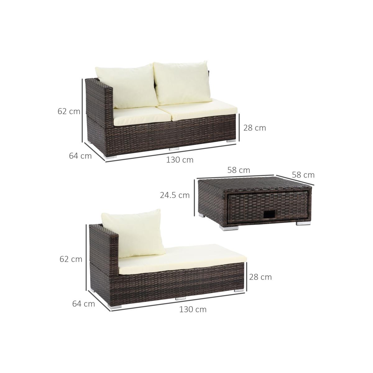 For an effortless blend of style and comfort which revives your garden this season, opt for this outdoor dining set from Outsunny. A unique and beautiful mixed grey colour scheme, the set features a two-seater corner sofa, a two-seater sofa with a single reclining back and a square coffee table with storage - meaning you have everything you need for an afternoon of lounging with family and friends. A reclining back on the sofa adjusts to five different levels for you to lean back.