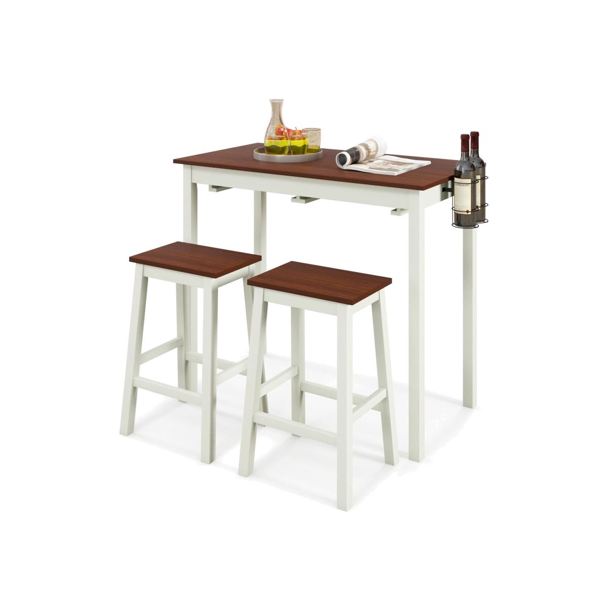 The bar table set includes a rectangular bar table and 2 bar stools, meeting your needs for working, dining and chatting. As the stools come with a footrest, you can comfortably relax your legs. Featuring rustic style and warm colour, the 2 personal dining table sets will perfectly match with many decor themes in your living room, kitchen or pub. With a space-saving design, you can hang up the stools under the table when not in use. The innovative design also allows you to easily clean the floor under the table.