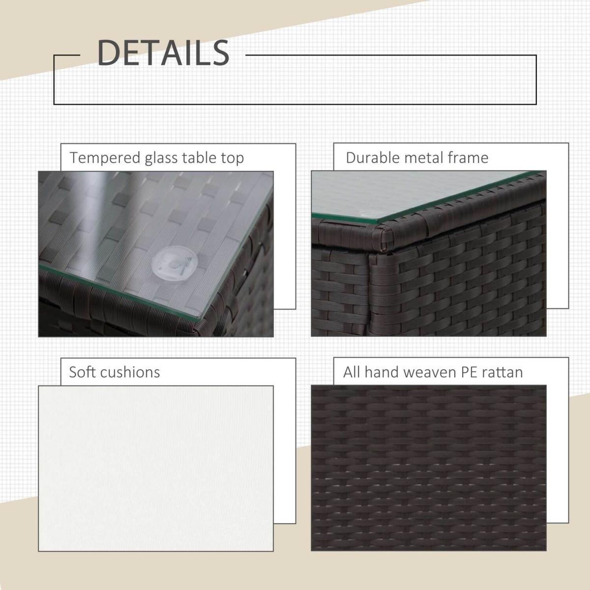 This outdoor bistro set made of PE Rattan is an ideal choice for your garden, patio or balcony. Combined with an aluminium frame structure and covered with rattan, this set is the optimal set to have. Comes with two seats with cushions and a table with a glass top to place drinks and magazines. The stylish modern design can fit into any style of your home and garden.
