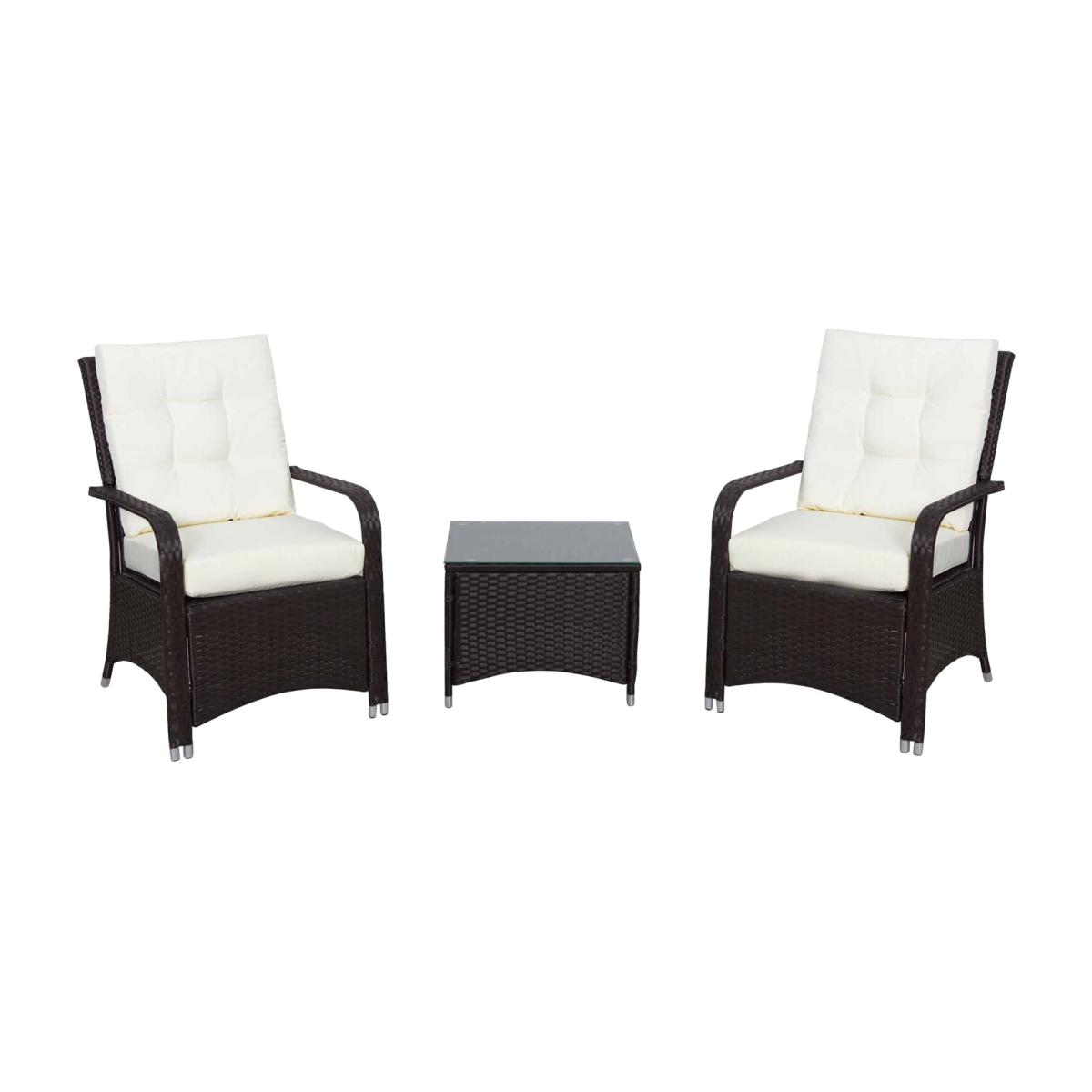 3 Piece Rattan Bistro Garden Furniture Set - Brown