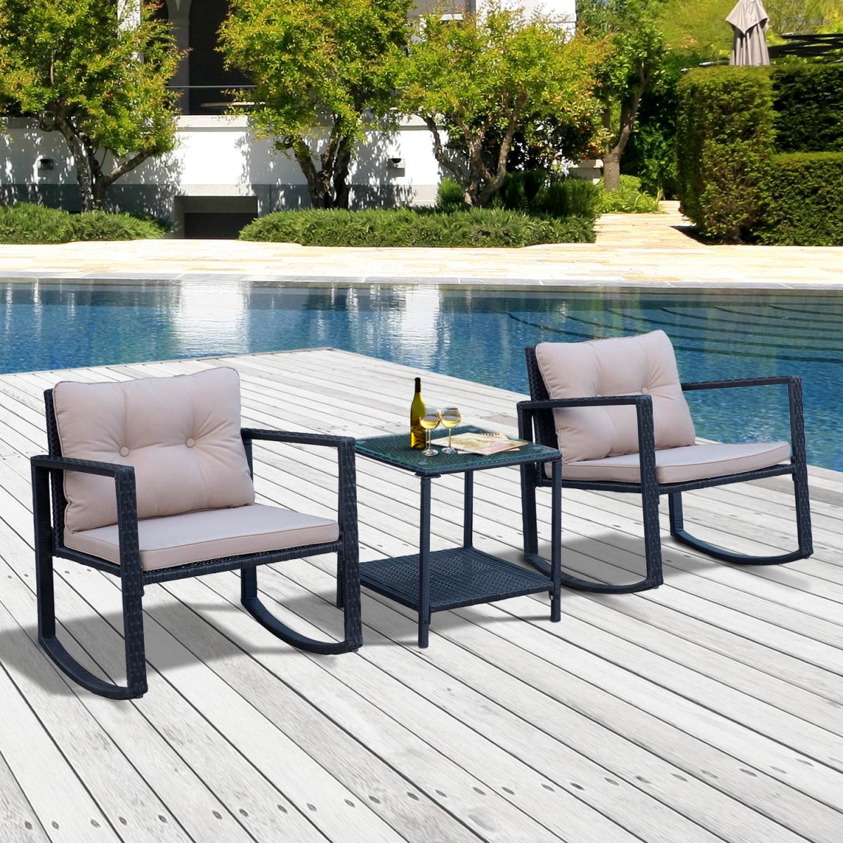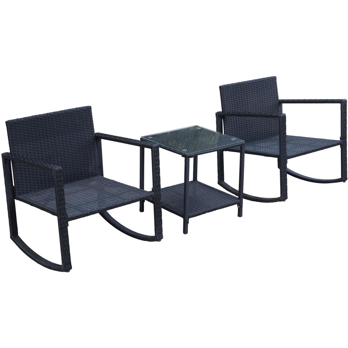 3 Piece Rattan Rocking Set - Black and MIxed Brown