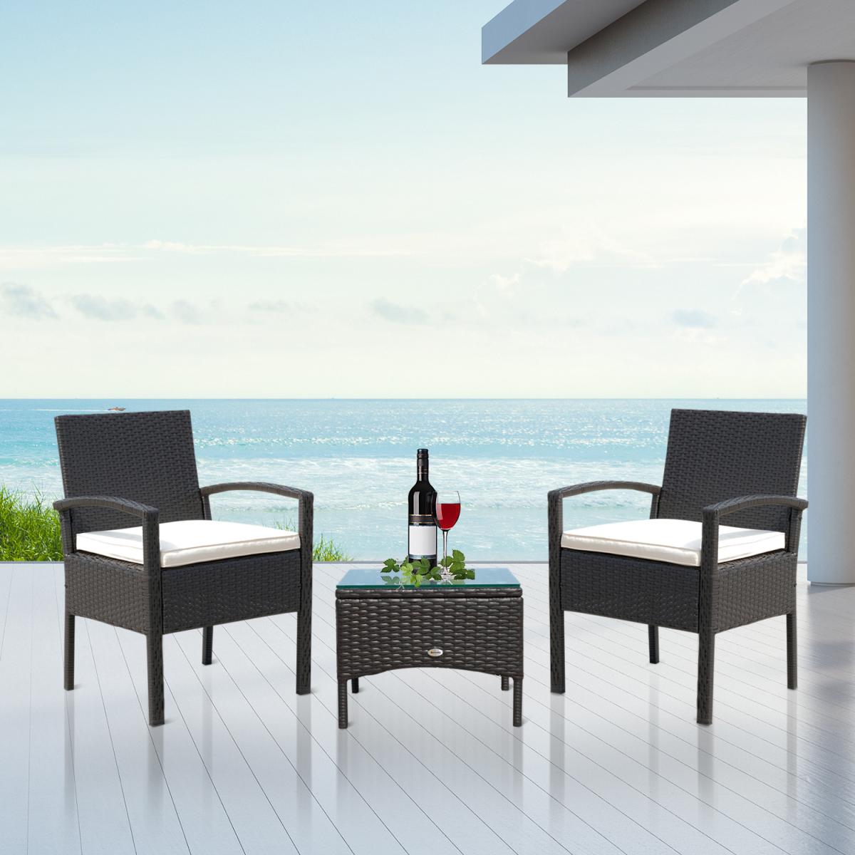 Outsunny 3pcs outdoor patio furniture set, with contemporary looks, offers you a comfortable and stunning outdoor lounging experience. This conversation set will let you and your family sit back, relaxing and enjoy your great outdoor time. It is ideal for the poolside, deck or patio and many more. Featuring steel frame construction for durable use, this patio outdoor chair can stand for both tests of time and temperature.