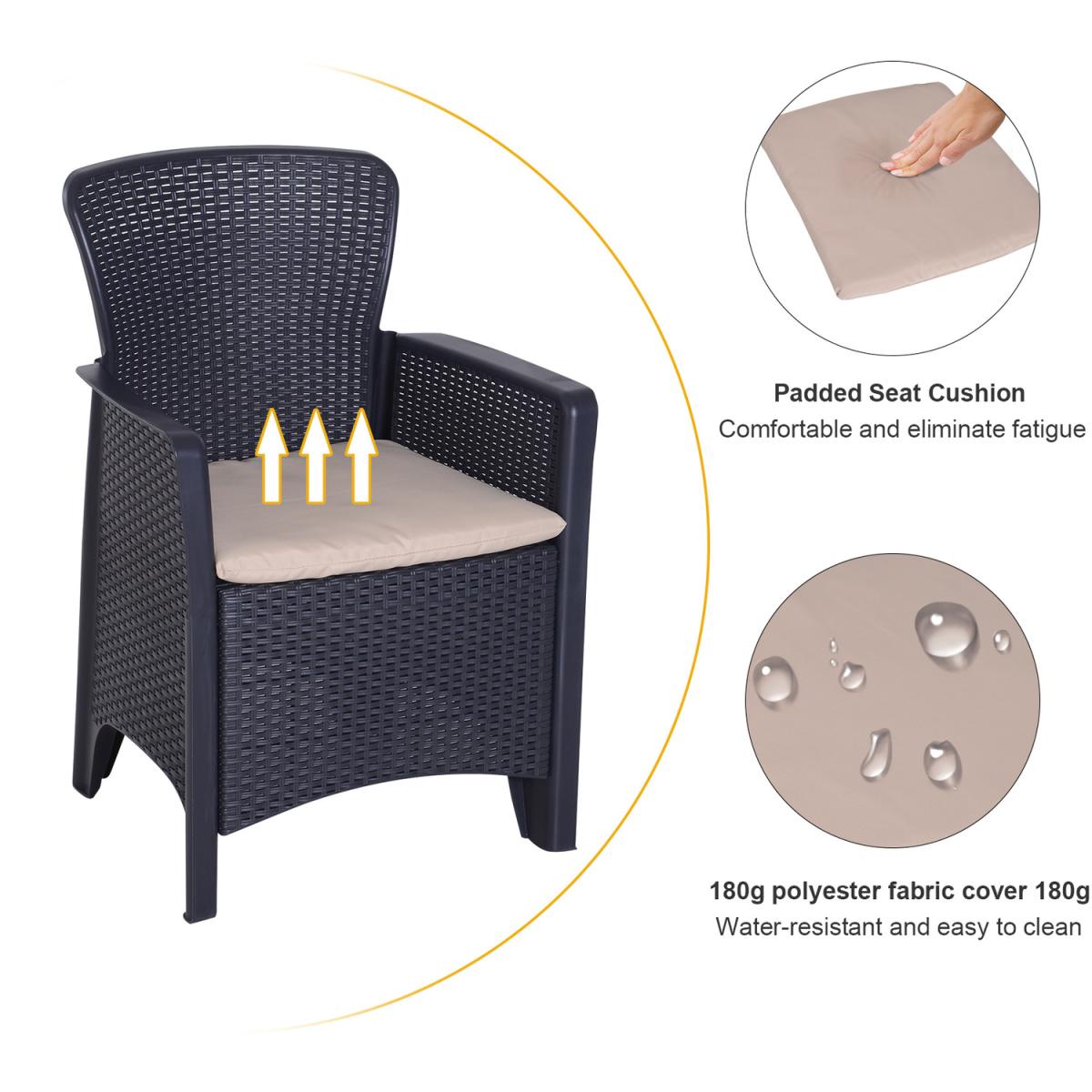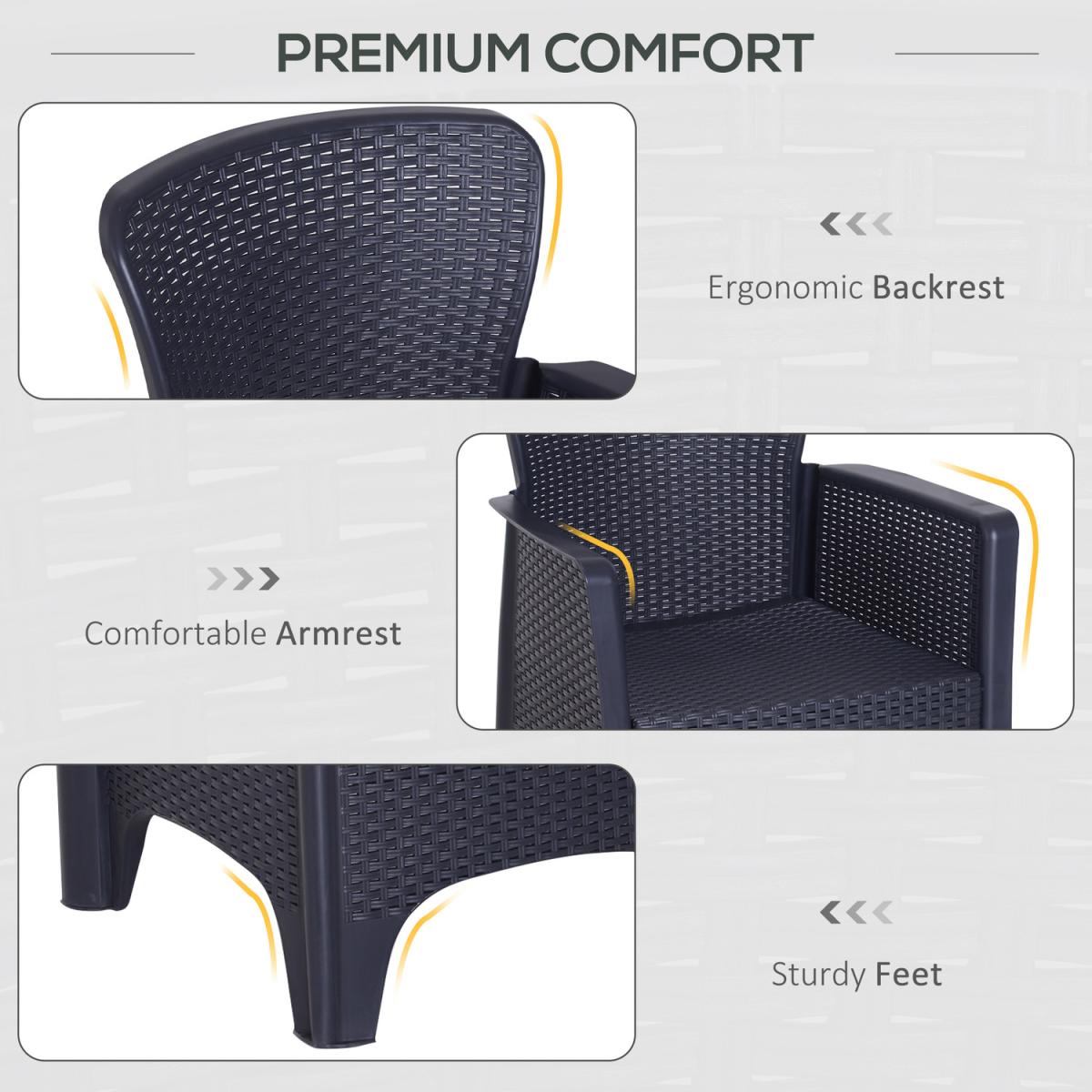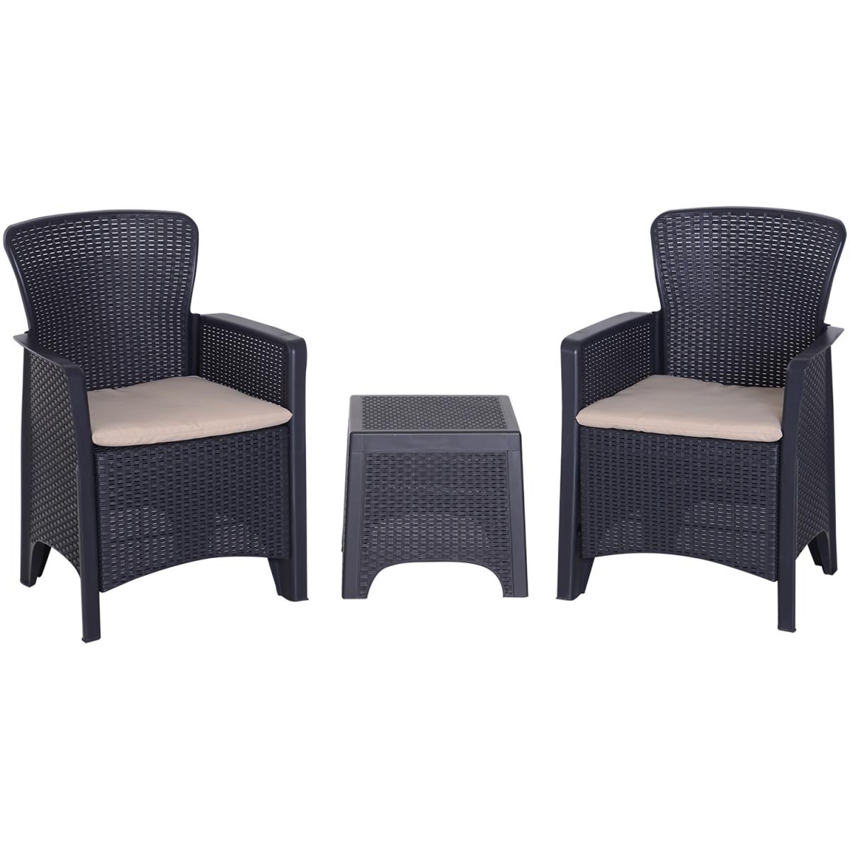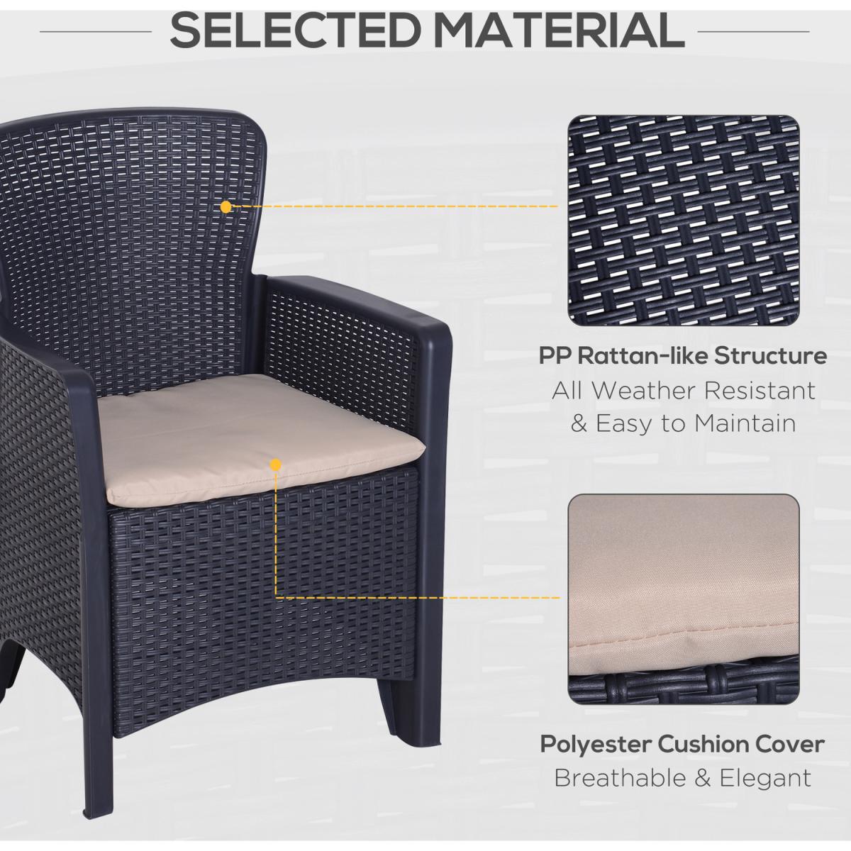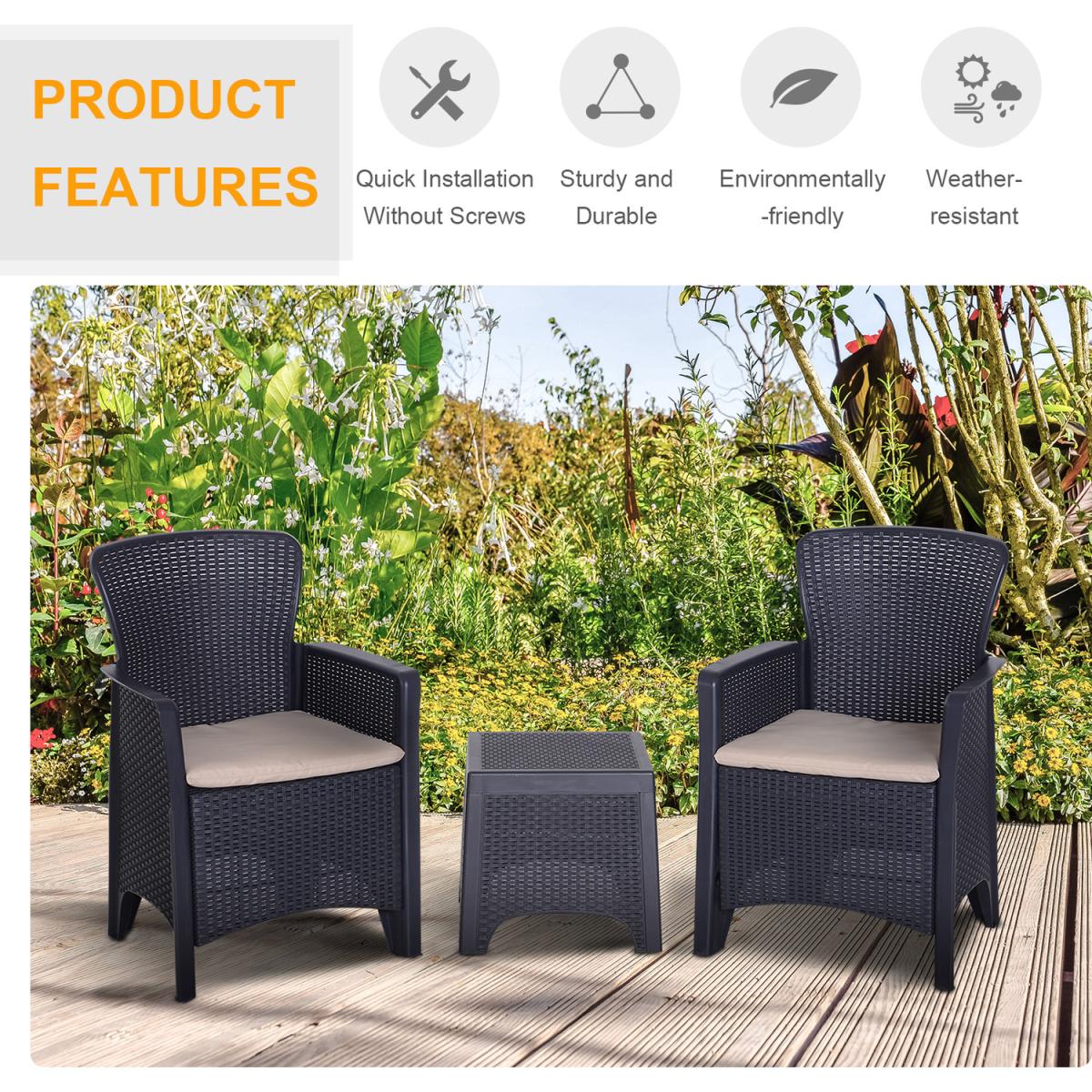Relax stylishly and comfortably with this three-piece bistro set from Outsunny. Made from high quality PP material, it is easy to maintain and is weather-resistant, meaning that you don't need to worry about moving it indoors and outdoors weather dependant, and each piece has been made to last with you for years of use. Both seats come with thick padded cushions so you can sit down and relax for hours on end. It's the perfect excuse for inviting friends and family over!